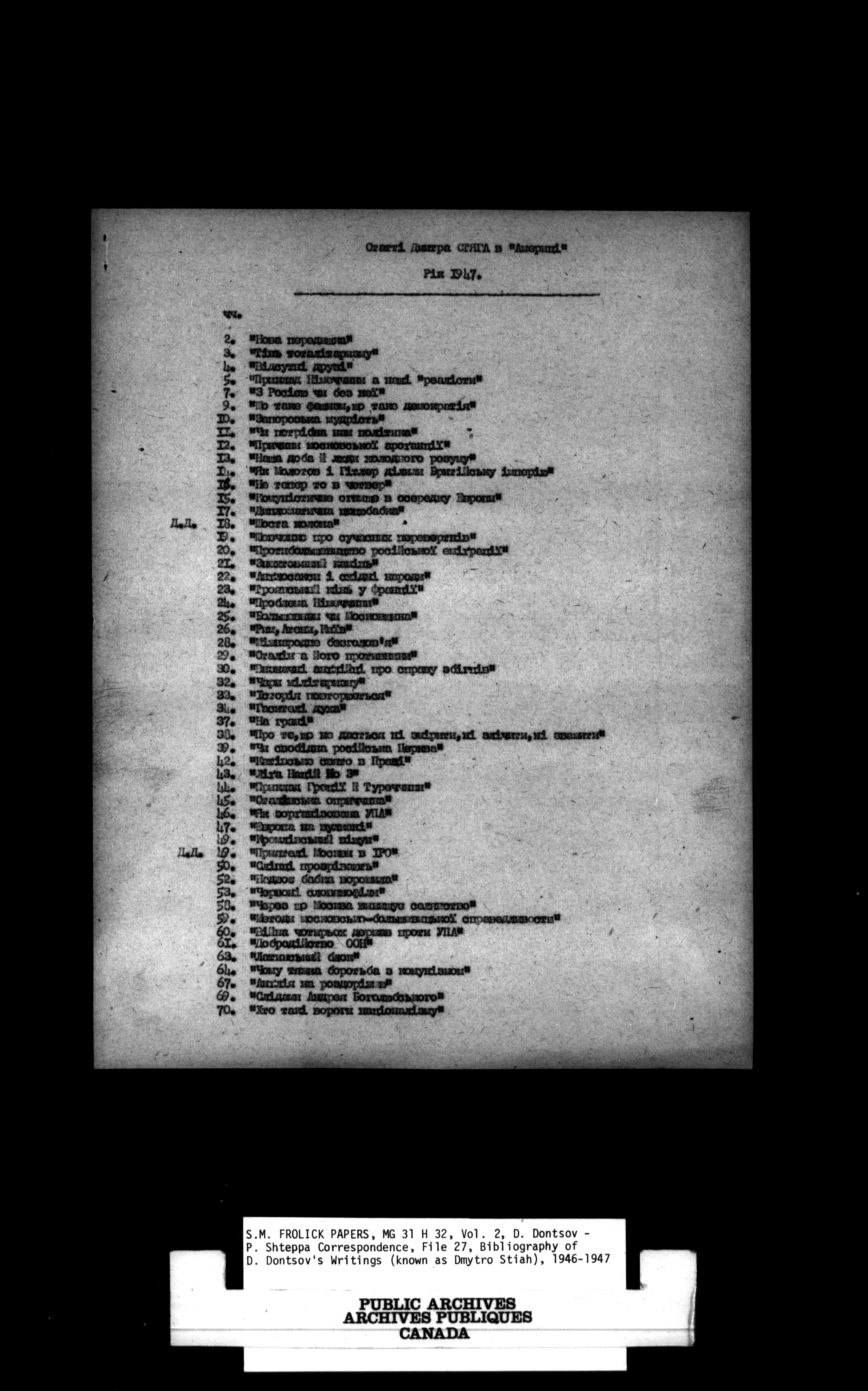 Stanley William Frolick fonds : Correspondence between Dmytro Dontsov and Paul Shteppa during the period of 1945-1972
