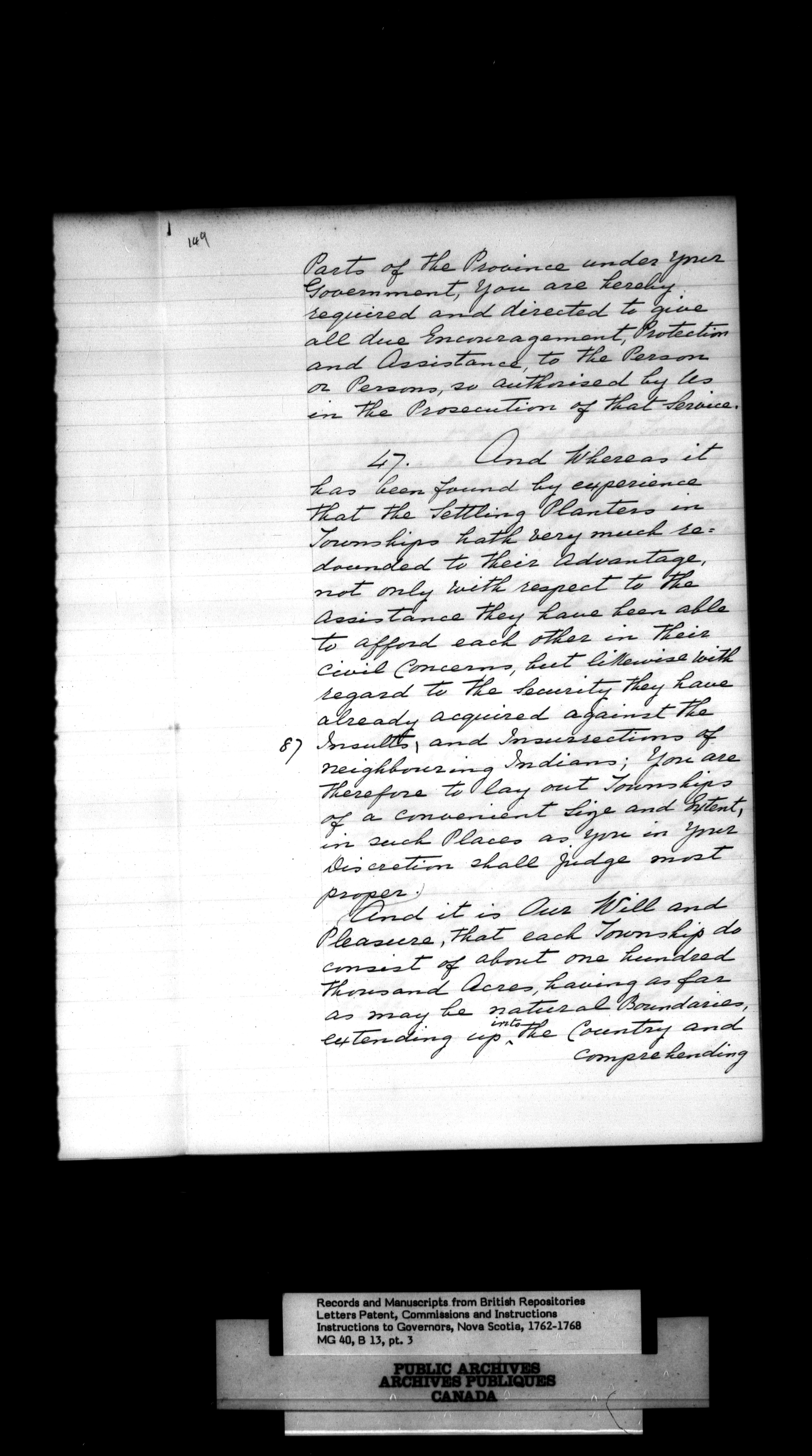 Nova Scotia and Cape Breton, Commissions and Instructions to Governors - 989