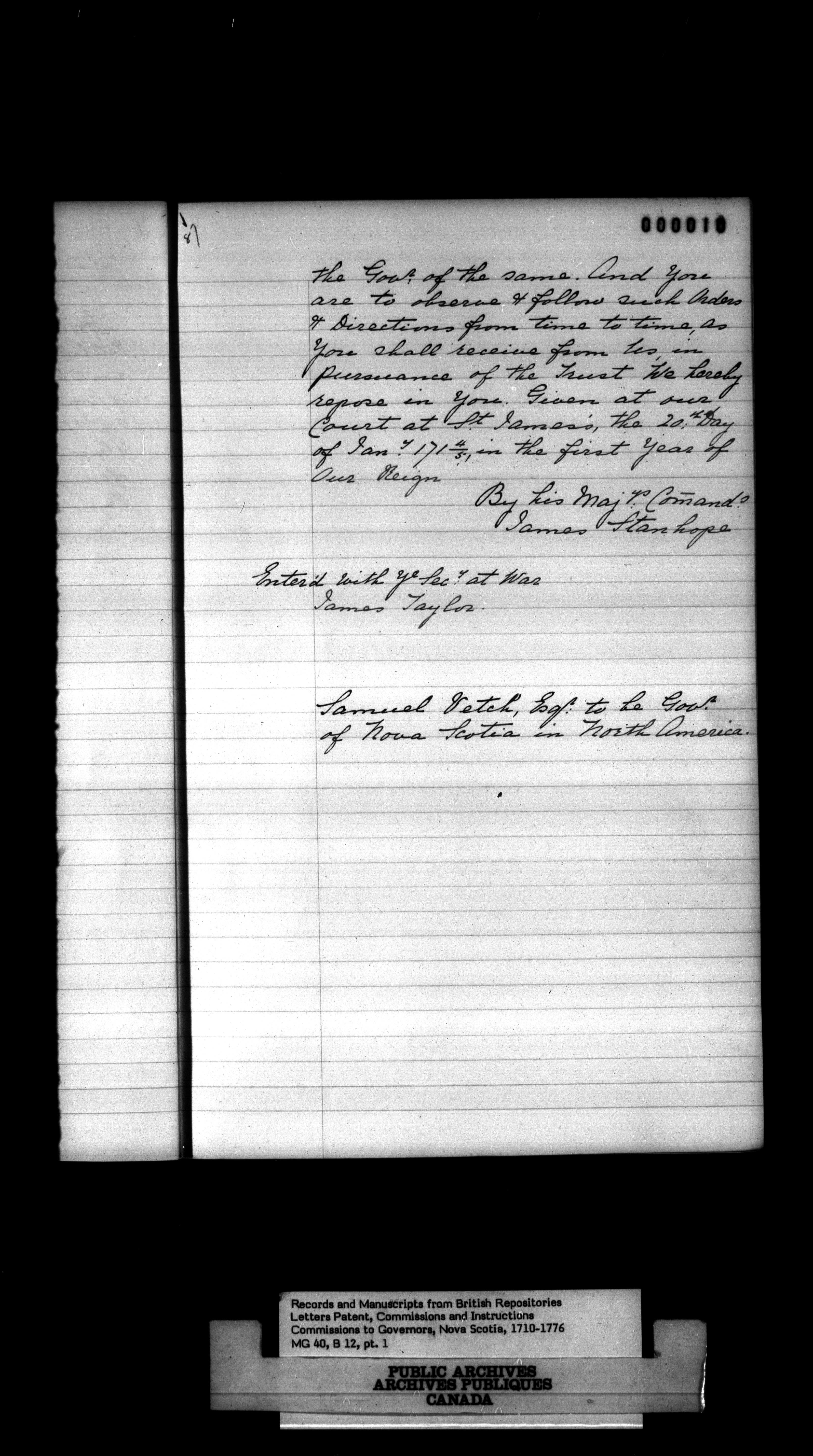 Nova Scotia and Cape Breton, Commissions and Instructions to Governors - 989