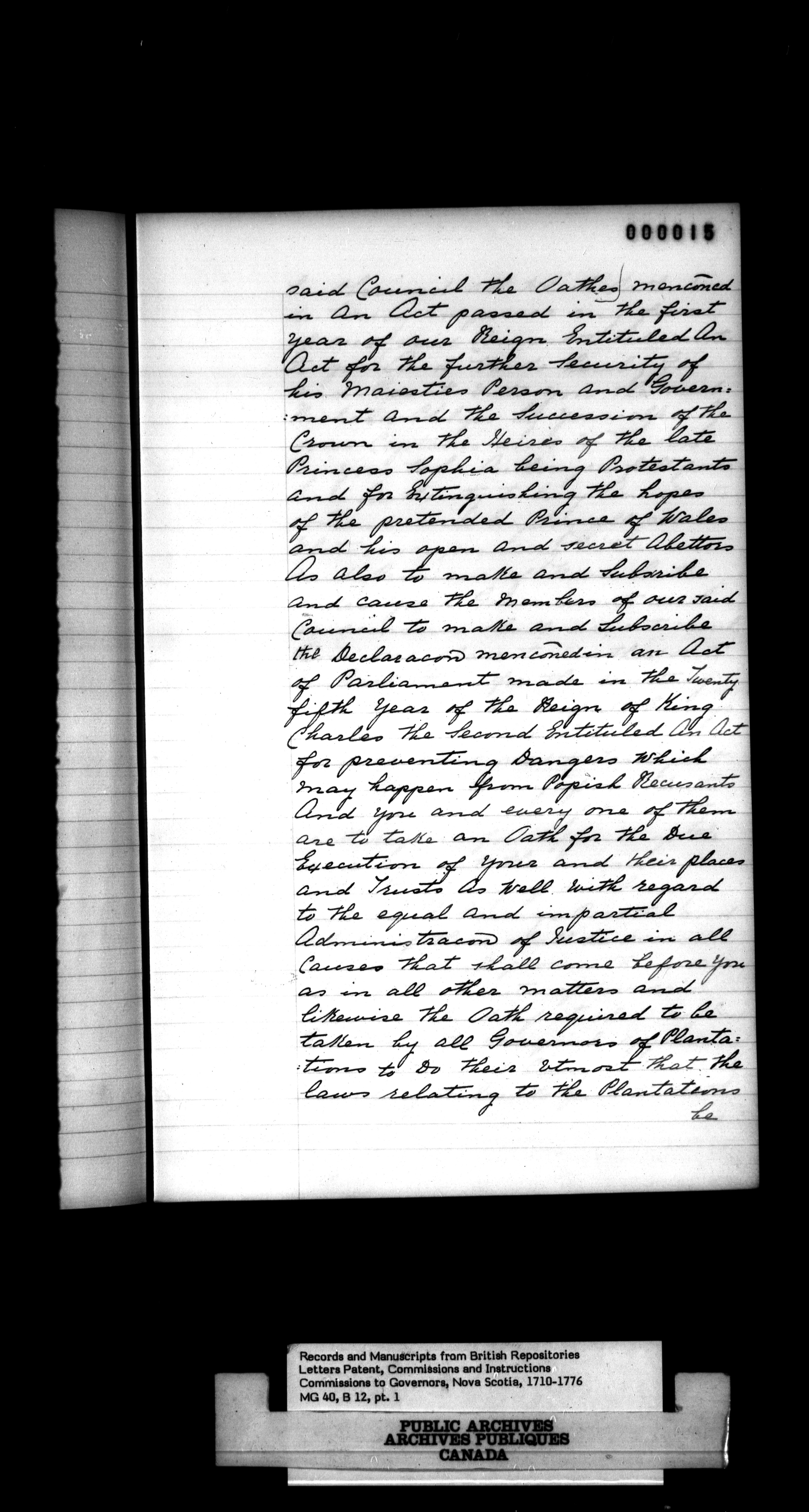 Nova Scotia and Cape Breton, Commissions and Instructions to Governors - 989