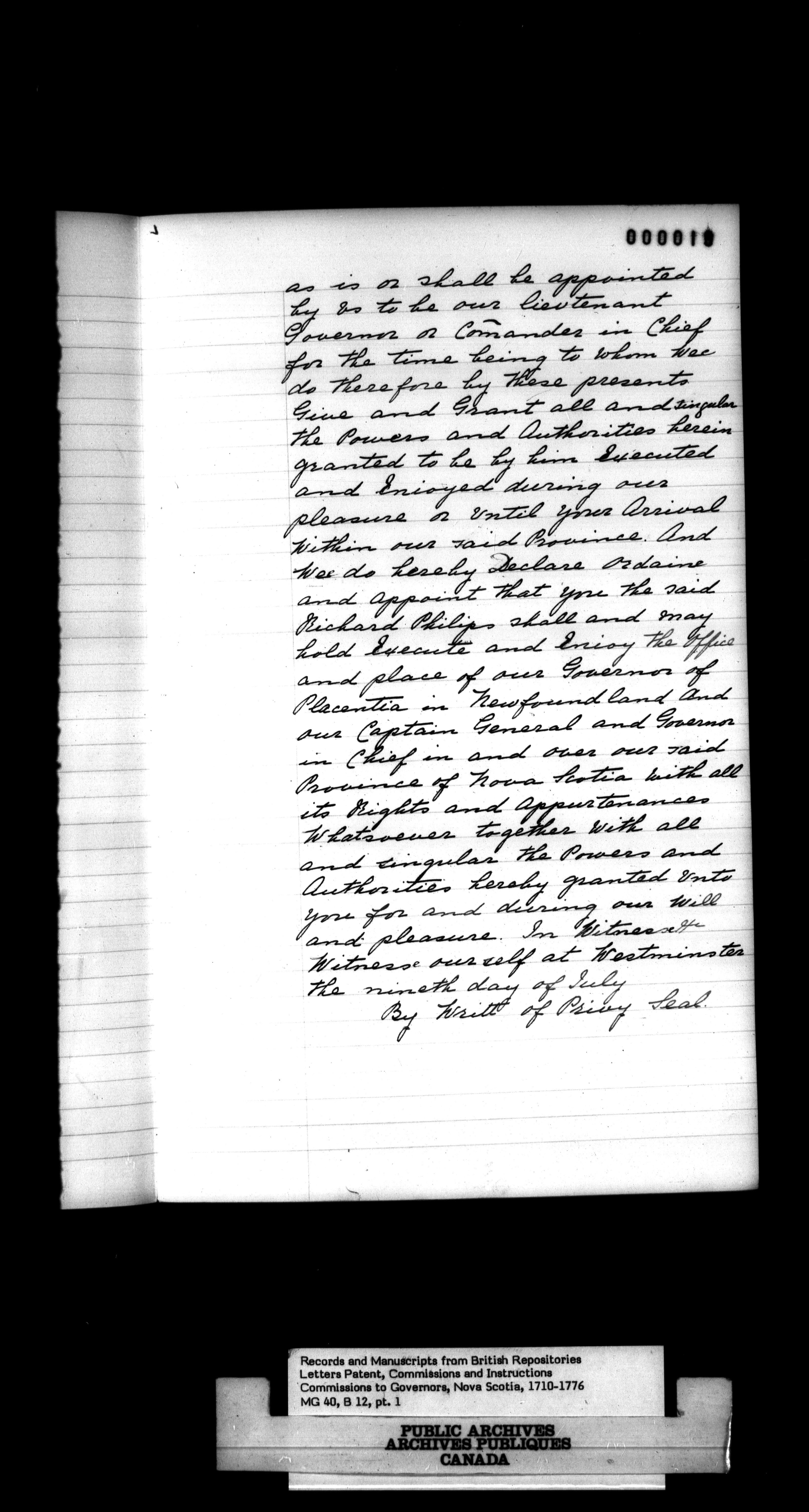 Nova Scotia and Cape Breton, Commissions and Instructions to Governors - 989