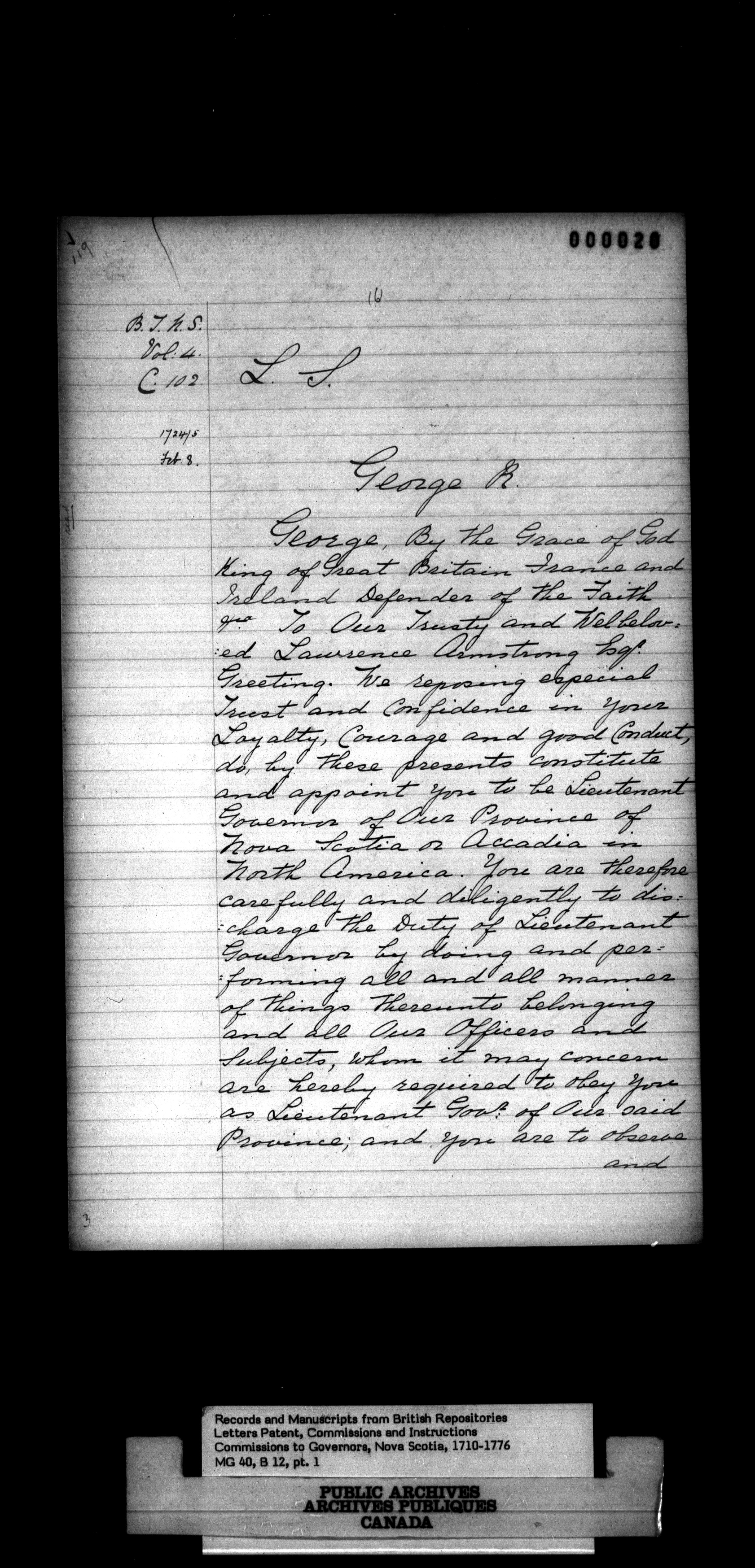Nova Scotia and Cape Breton, Commissions and Instructions to Governors - 989
