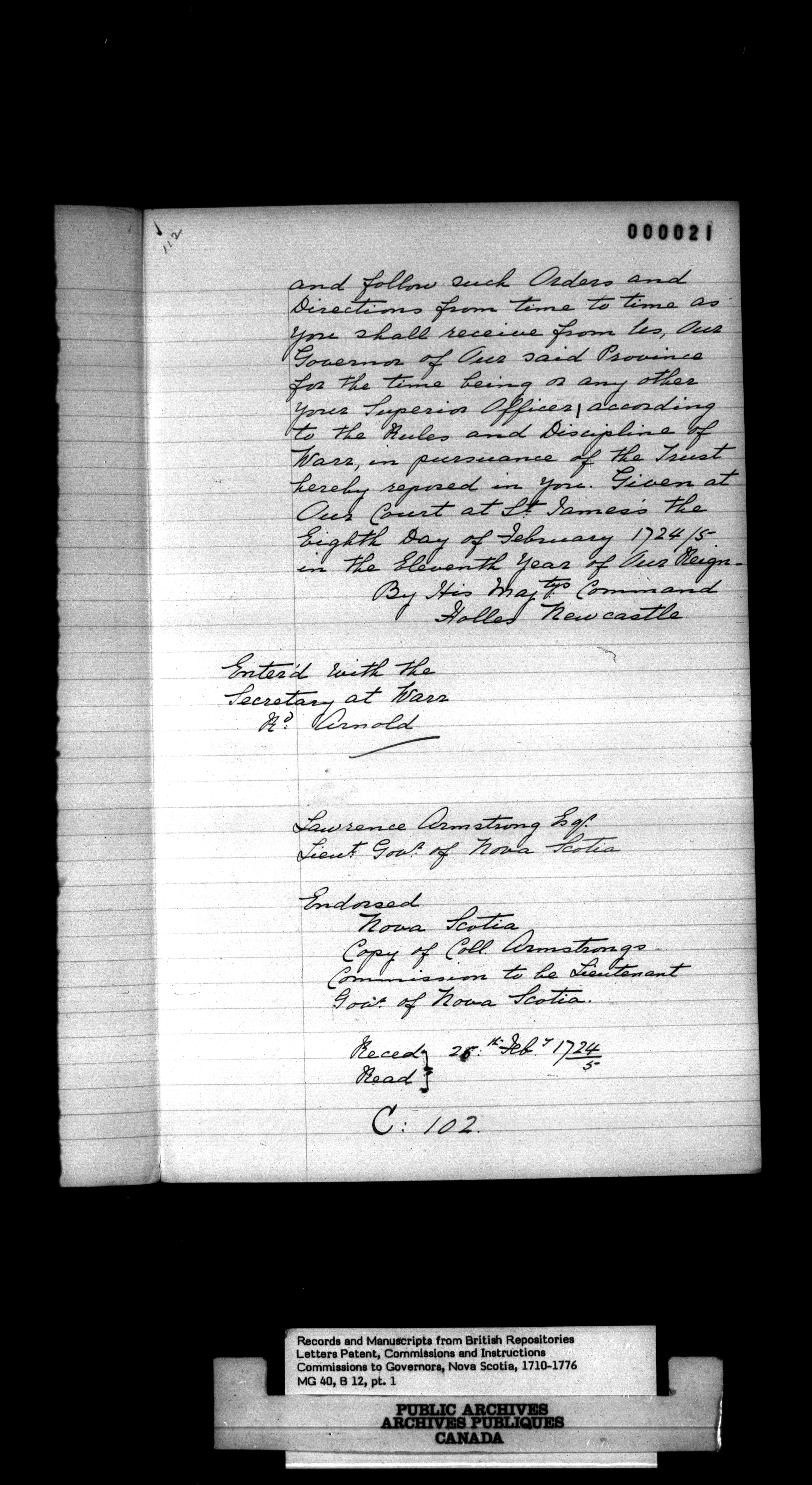 Nova Scotia and Cape Breton, Commissions and Instructions to Governors - 989