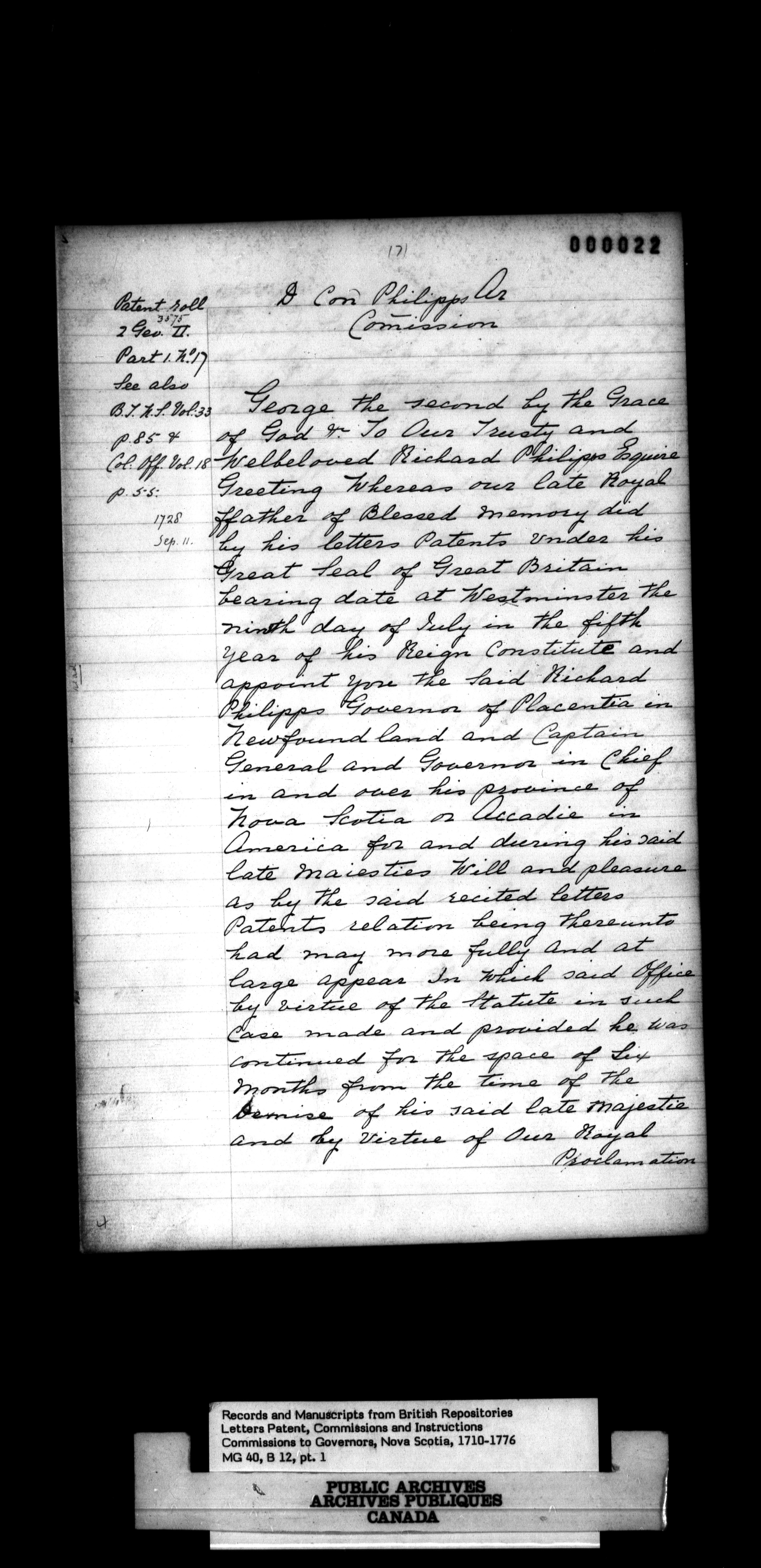 Nova Scotia and Cape Breton, Commissions and Instructions to Governors - 989
