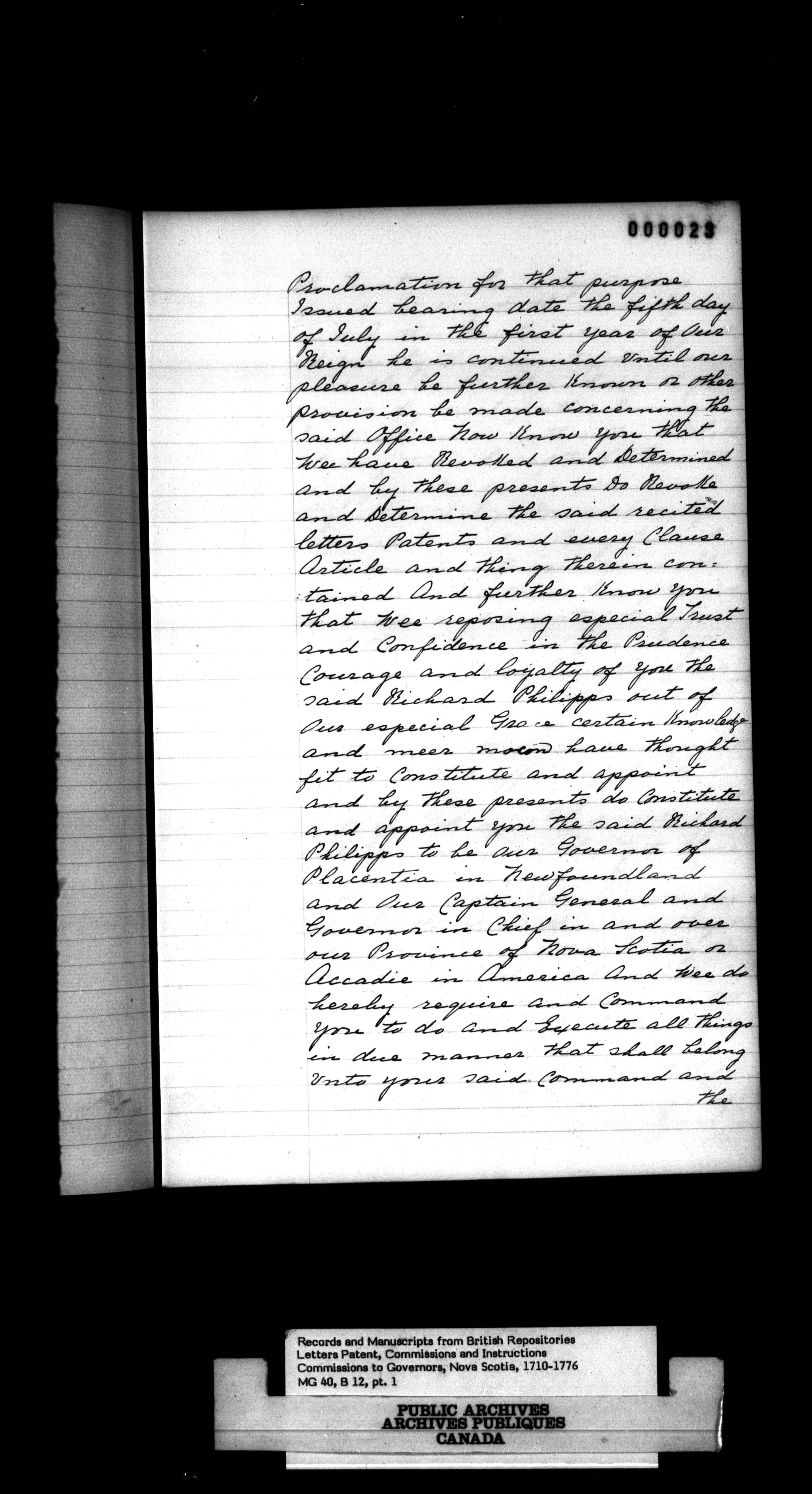 Nova Scotia and Cape Breton, Commissions and Instructions to Governors - 989