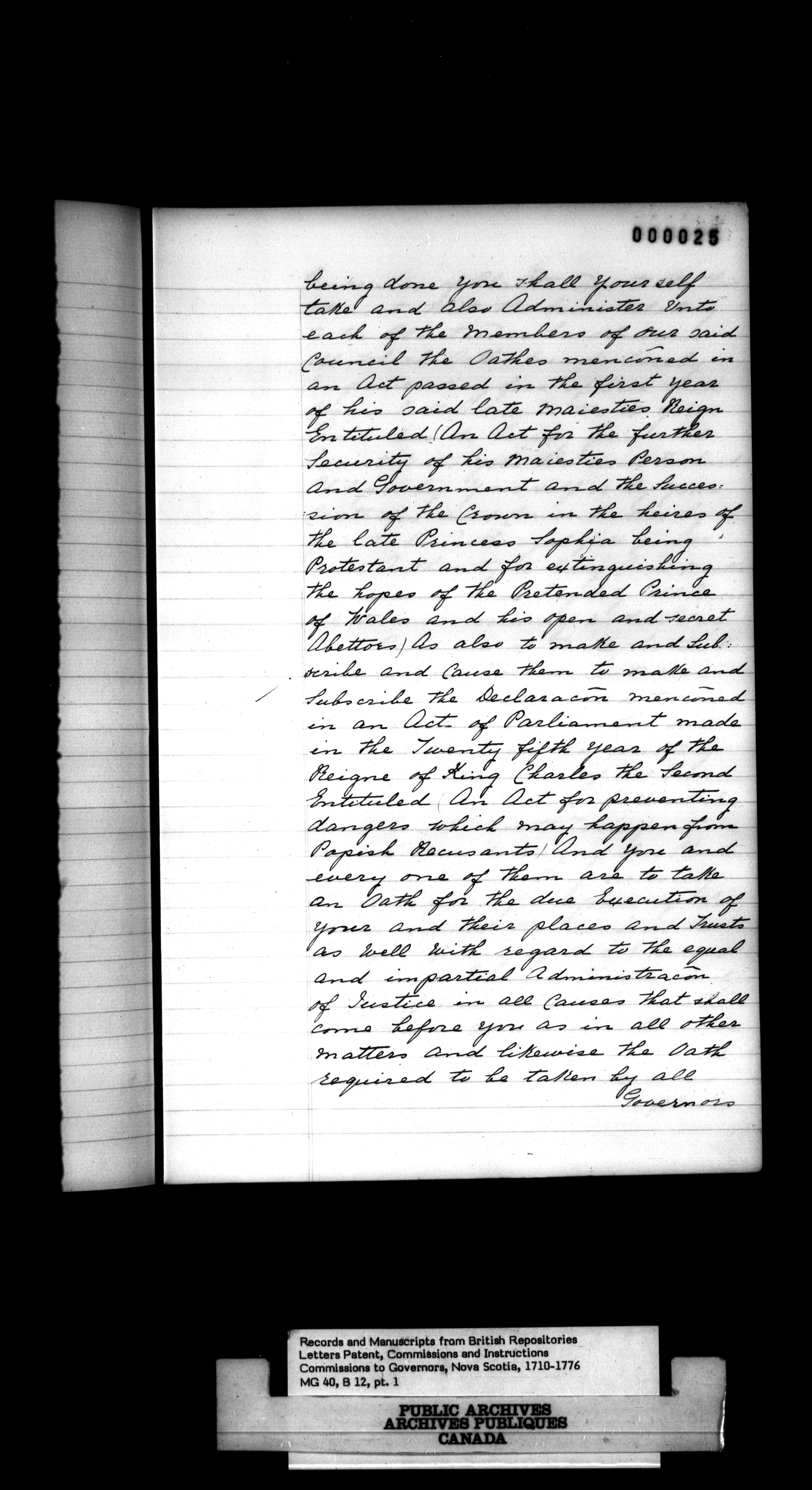 Nova Scotia and Cape Breton, Commissions and Instructions to Governors - 989