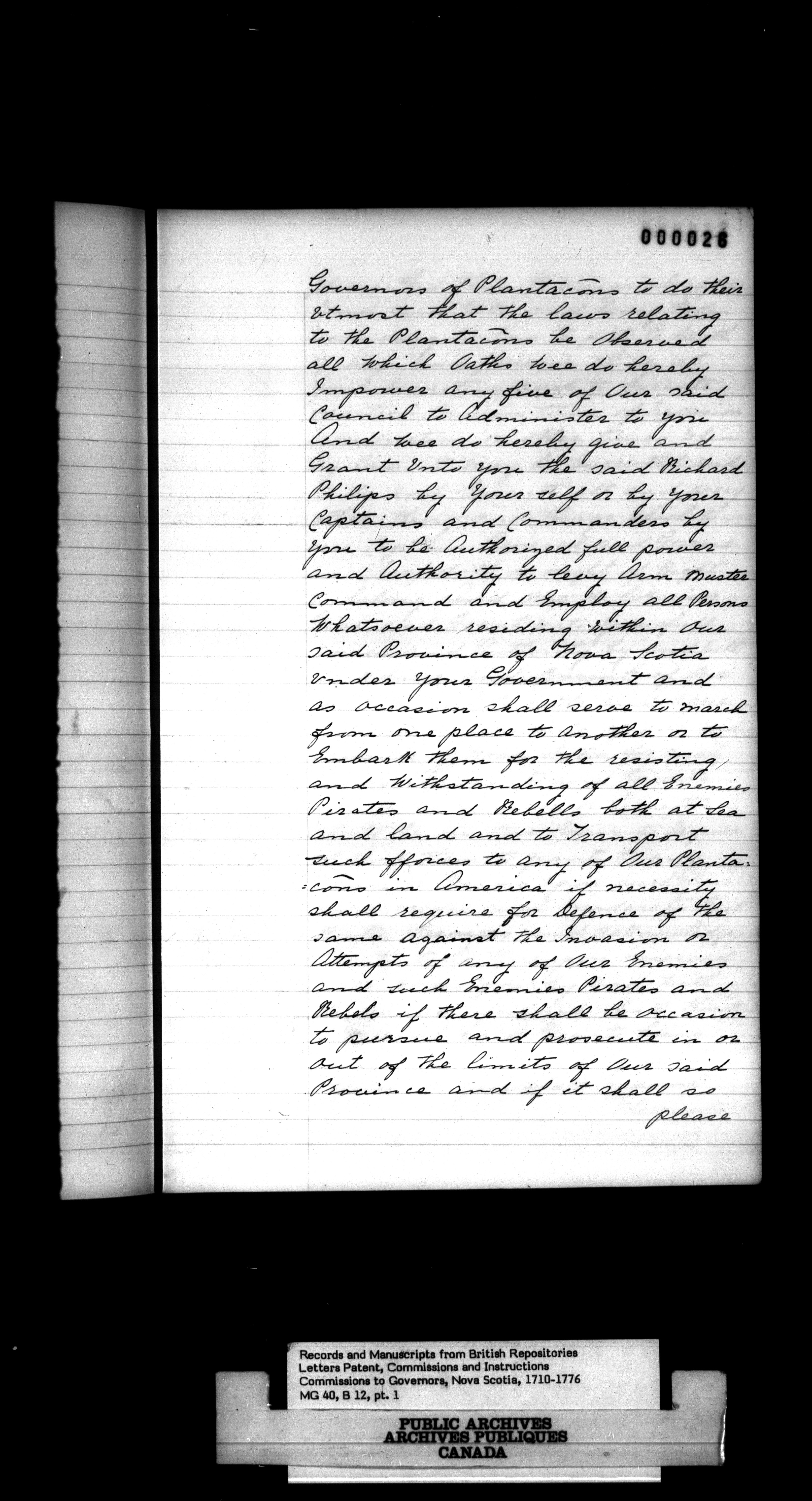 Nova Scotia and Cape Breton, Commissions and Instructions to Governors - 989