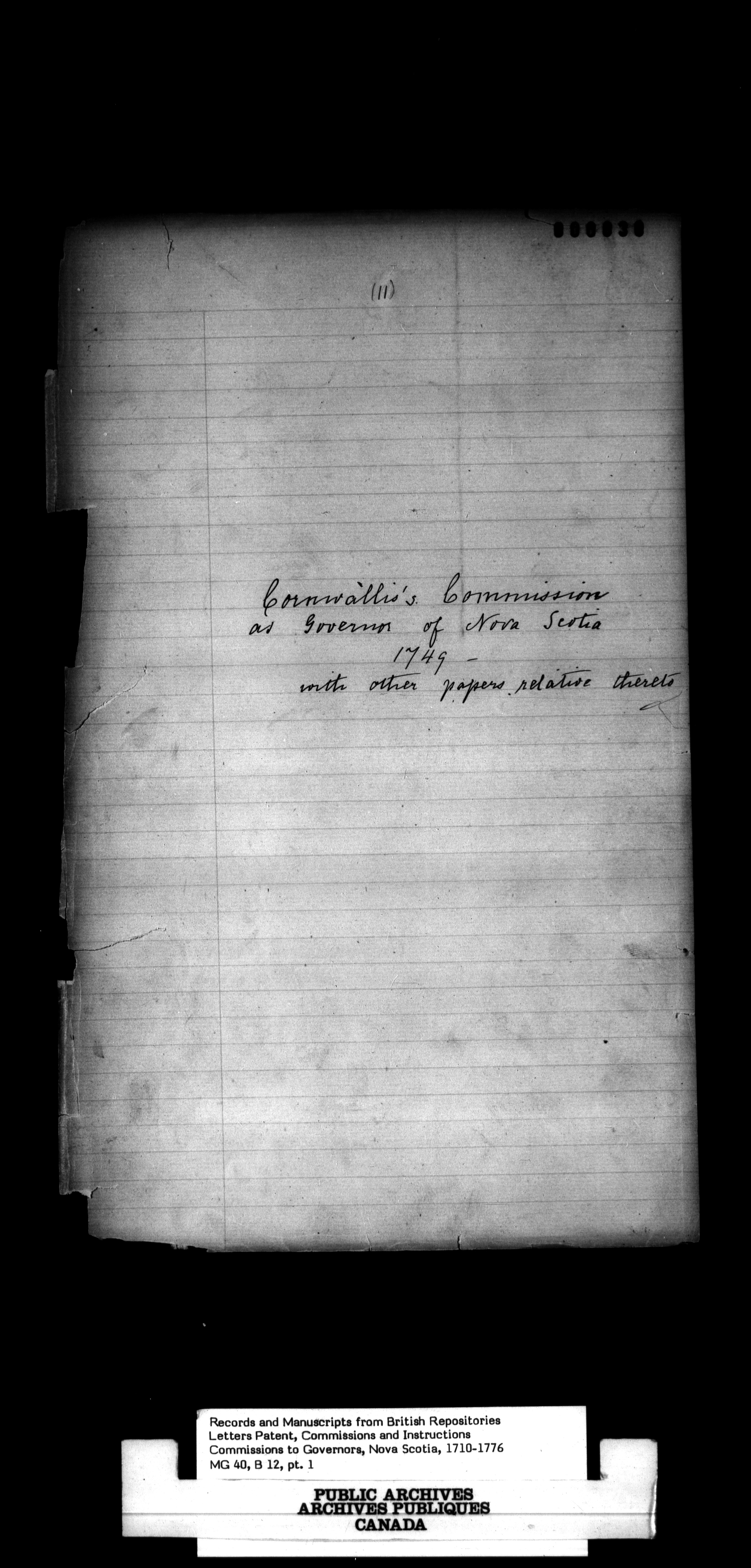 Nova Scotia and Cape Breton, Commissions and Instructions to Governors - 989