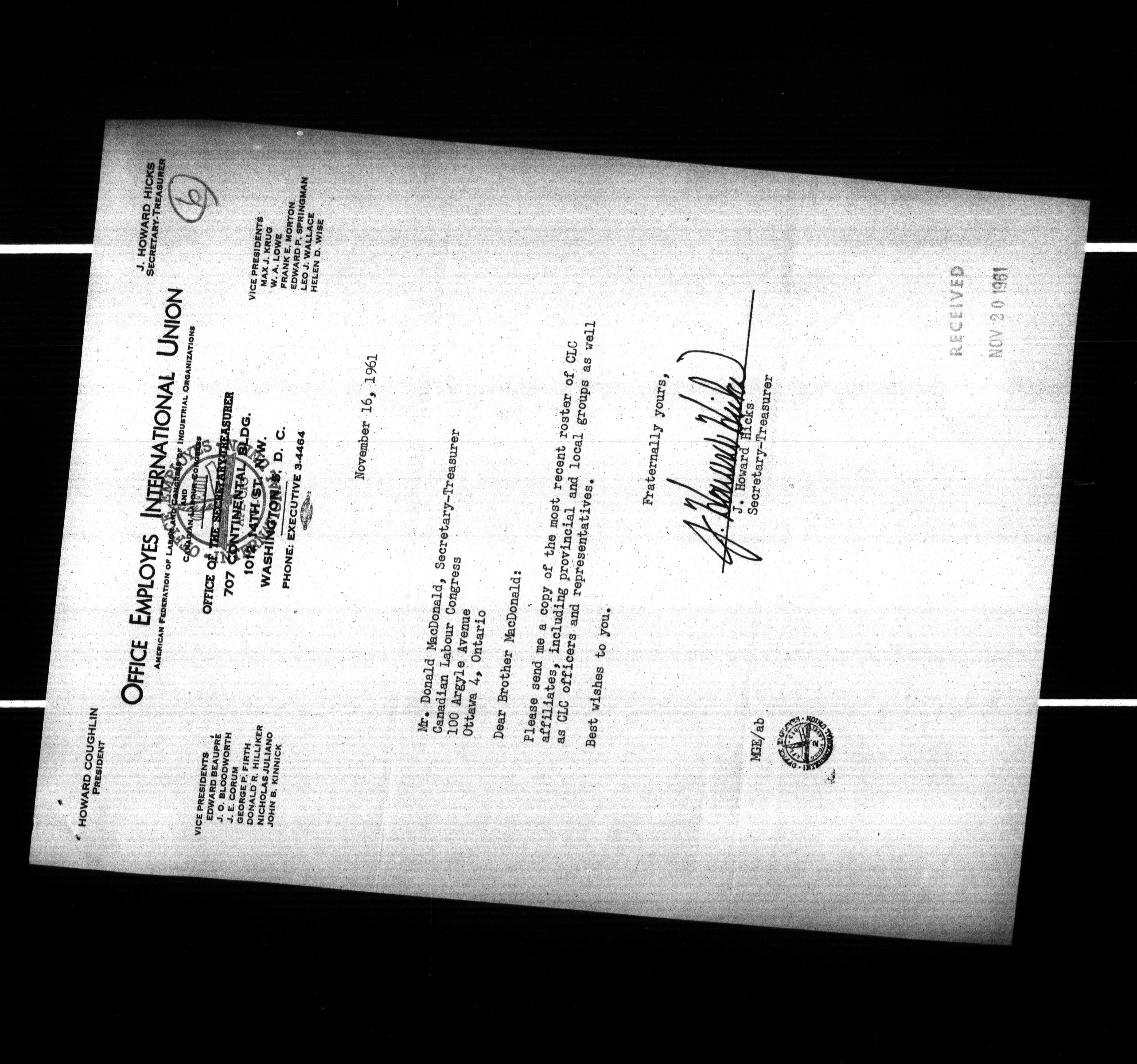 Canadian Labour Congress papers and correspondence pertaining to International Unions - 99