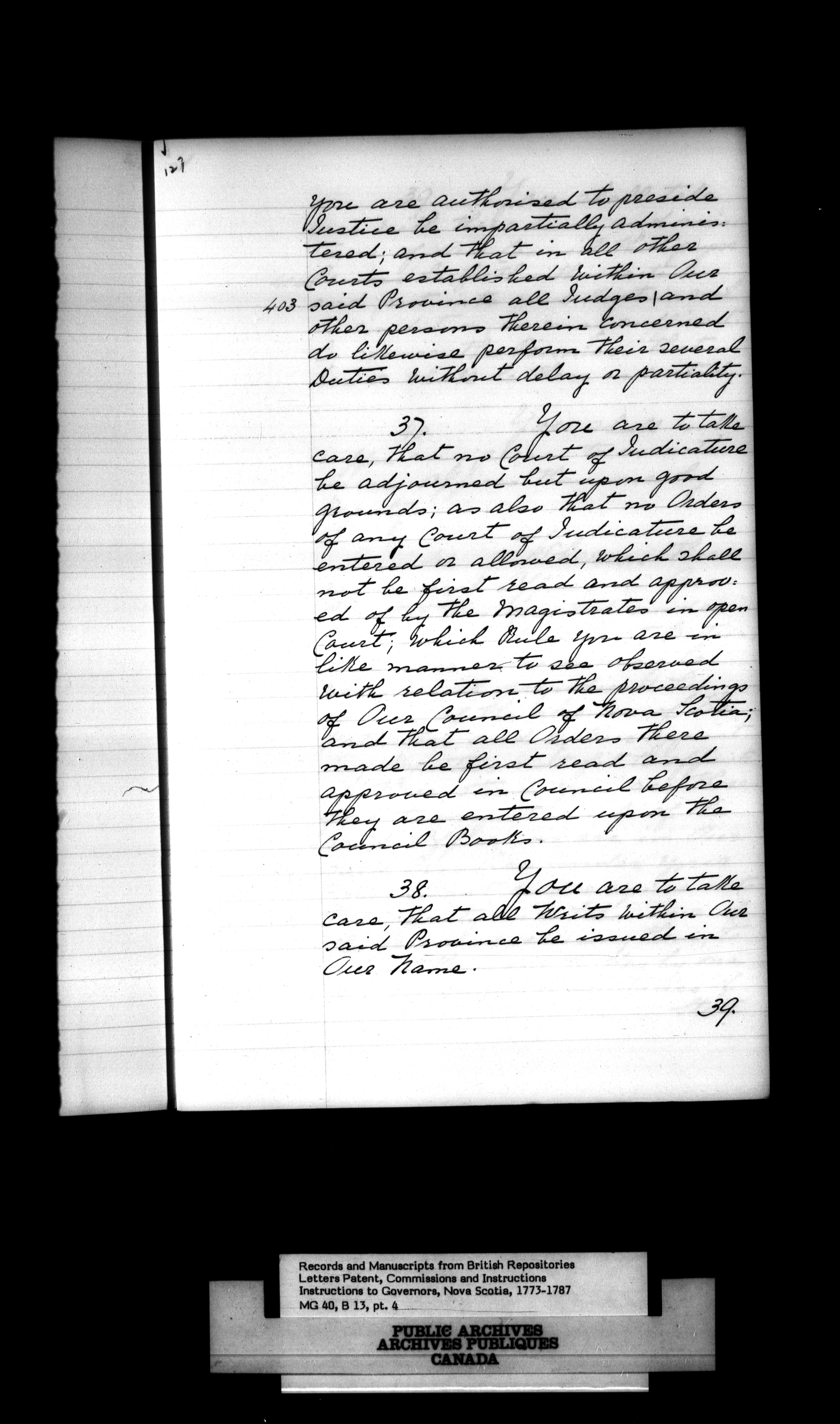 Nova Scotia and Cape Breton, Commissions and Instructions to Governors - 990