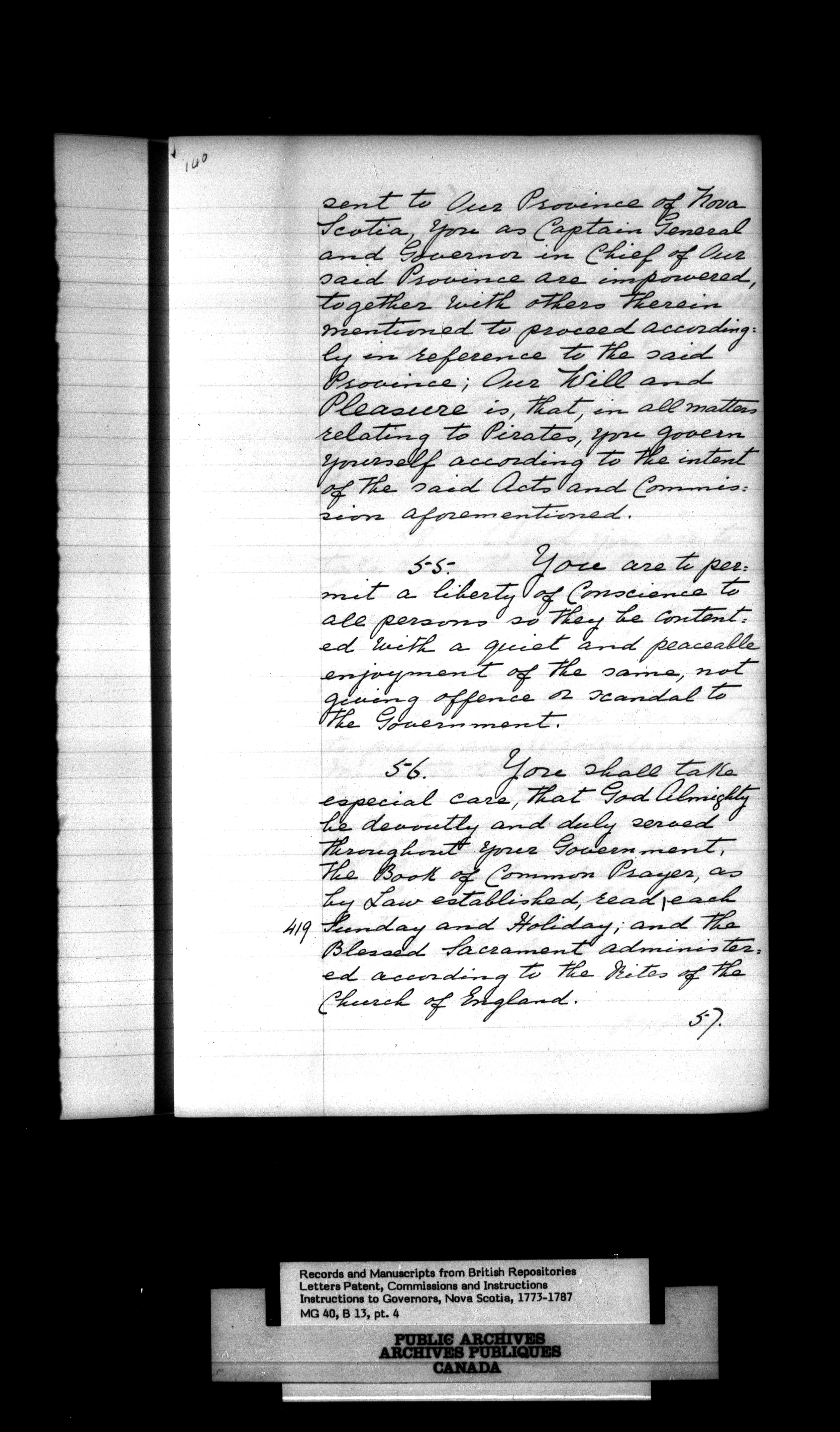 Nova Scotia and Cape Breton, Commissions and Instructions to Governors - 990