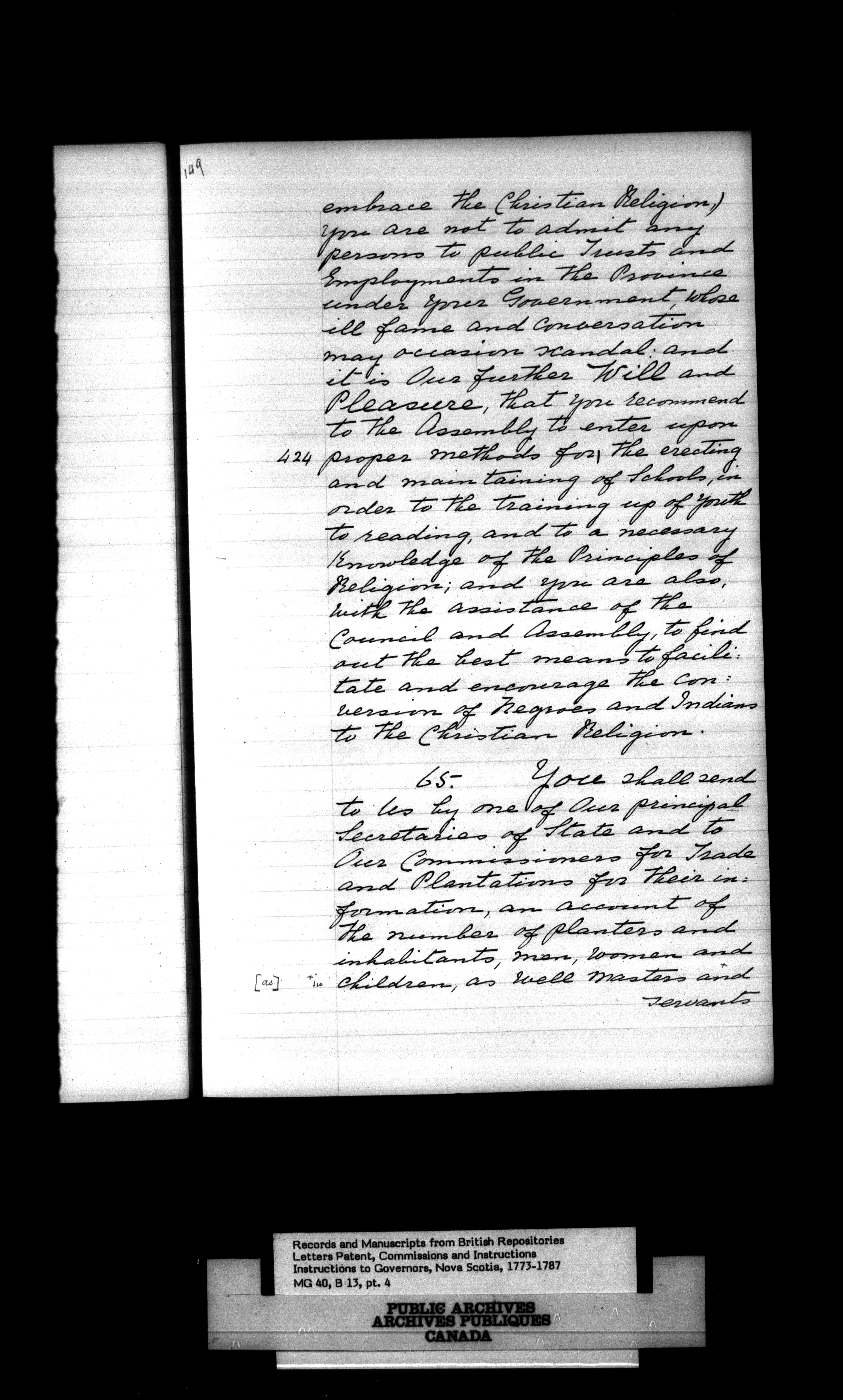 Nova Scotia and Cape Breton, Commissions and Instructions to Governors - 990