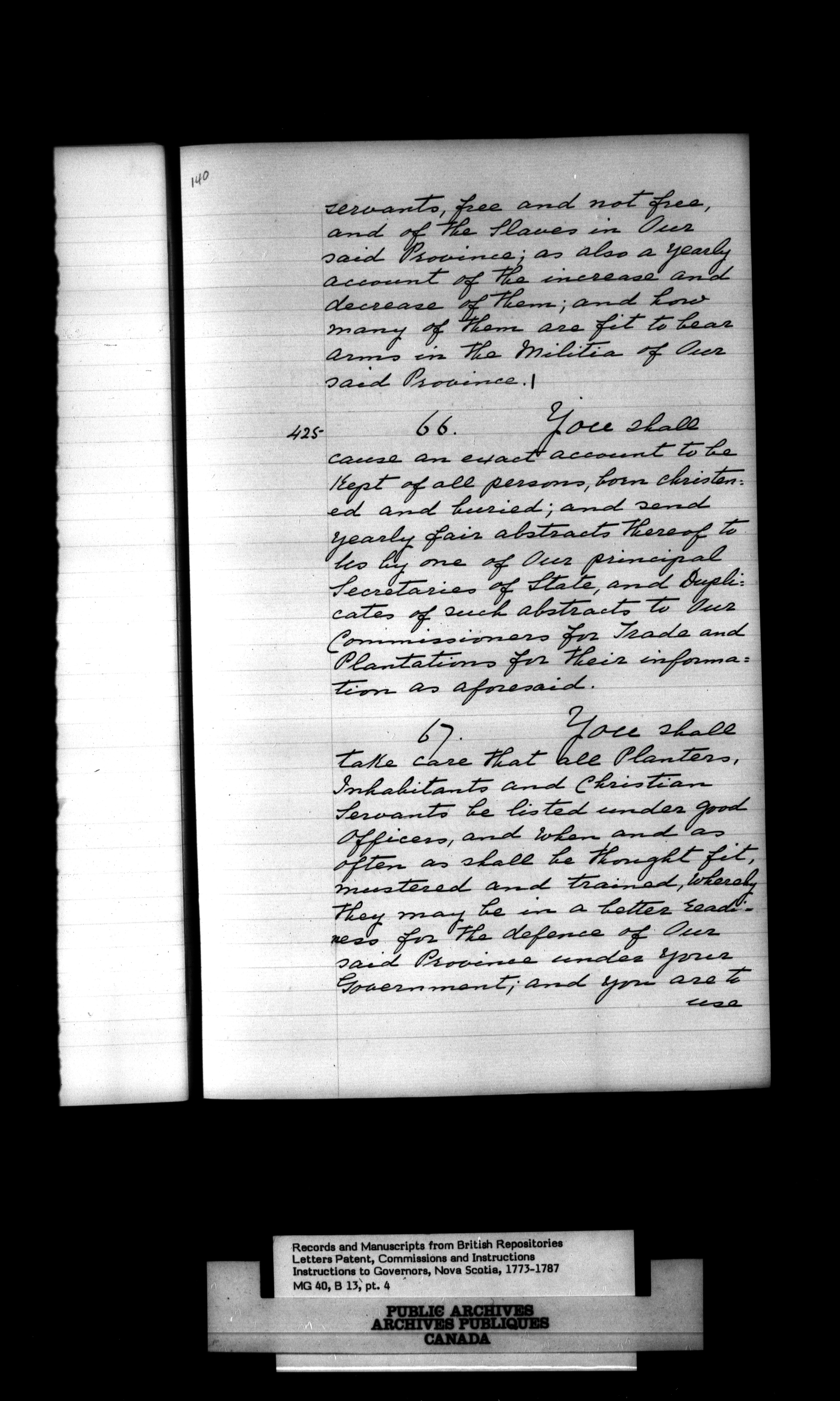 Nova Scotia and Cape Breton, Commissions and Instructions to Governors - 990