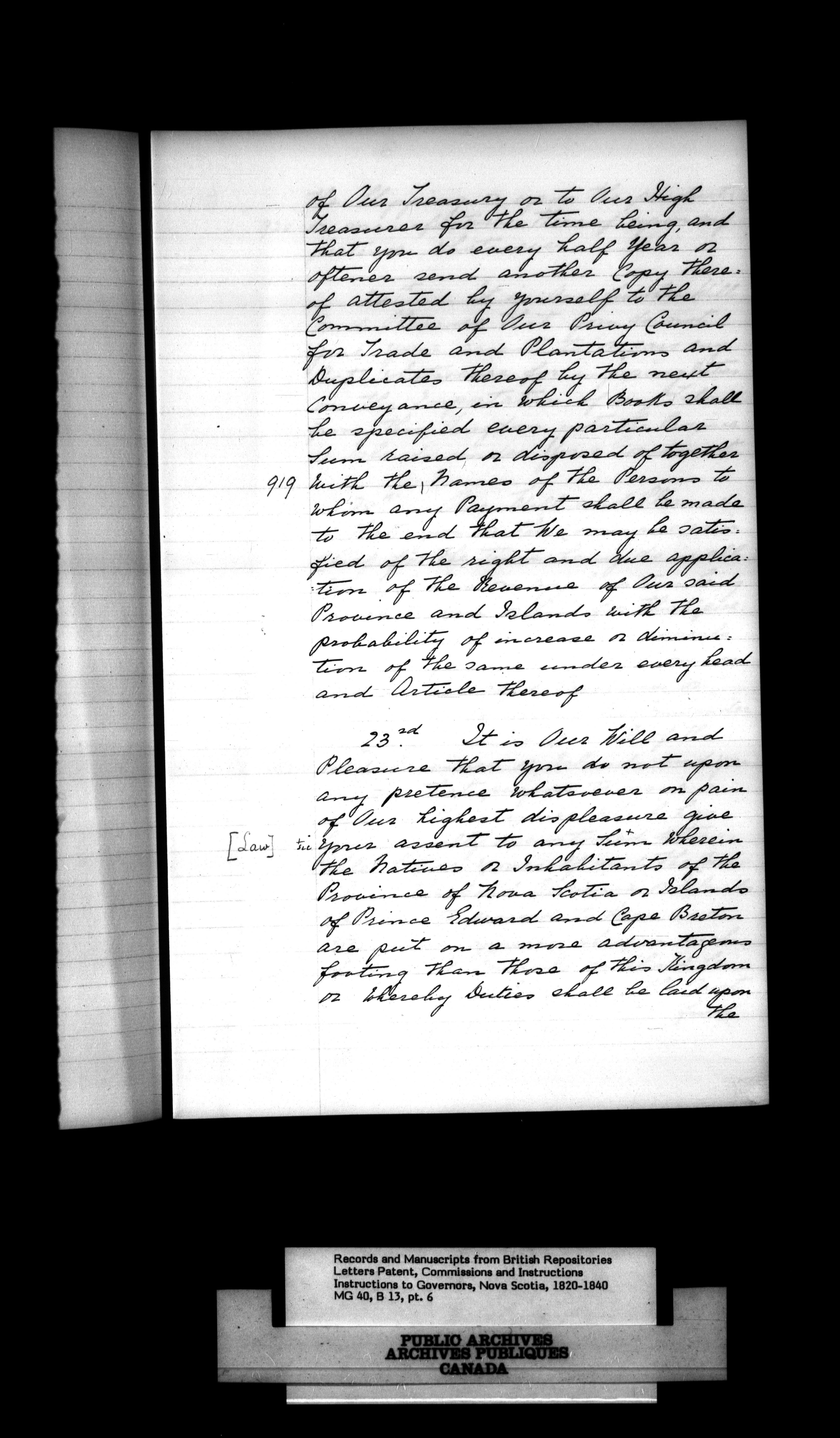 Nova Scotia and Cape Breton, Commissions and Instructions to Governors - 990