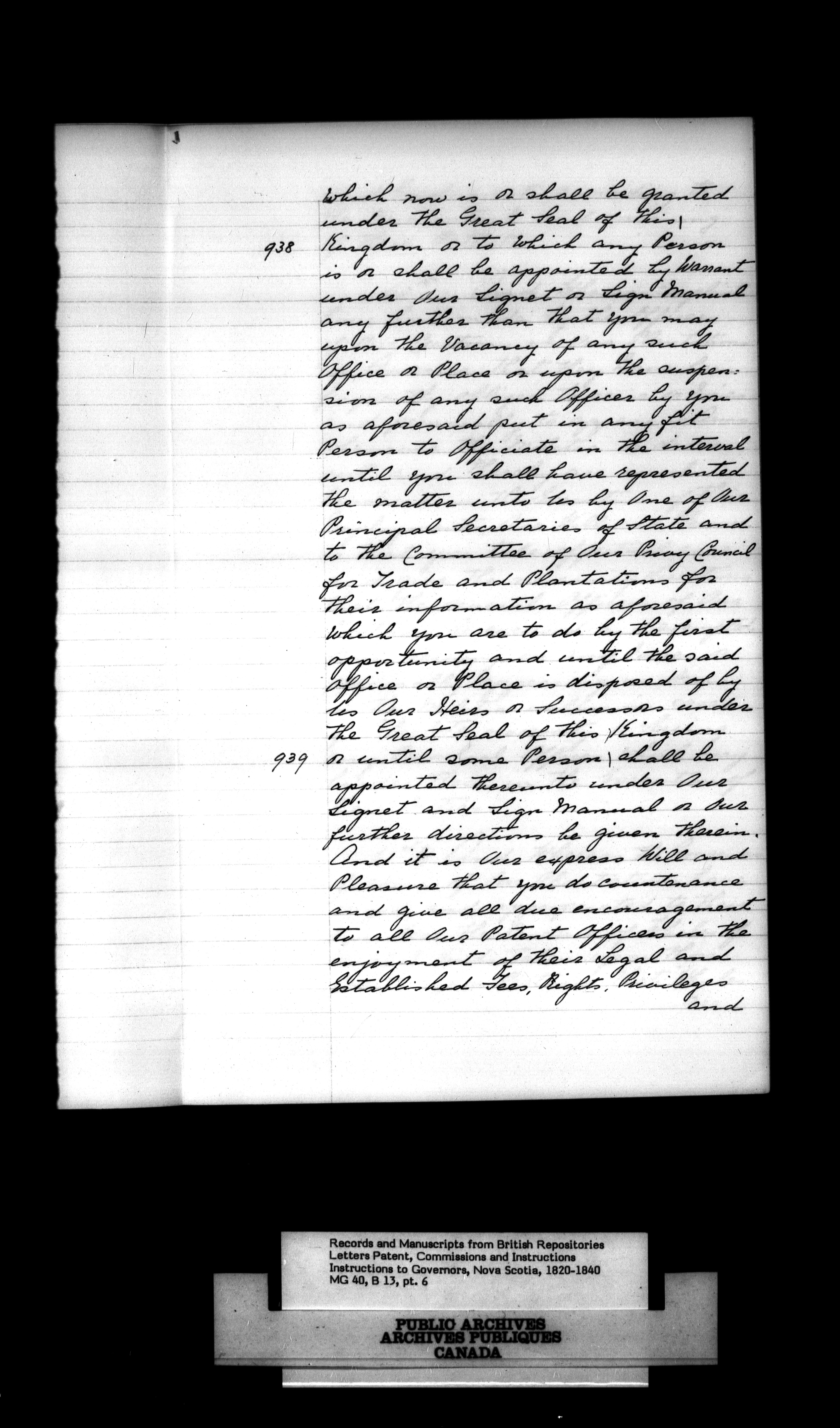 Nova Scotia and Cape Breton, Commissions and Instructions to Governors - 990