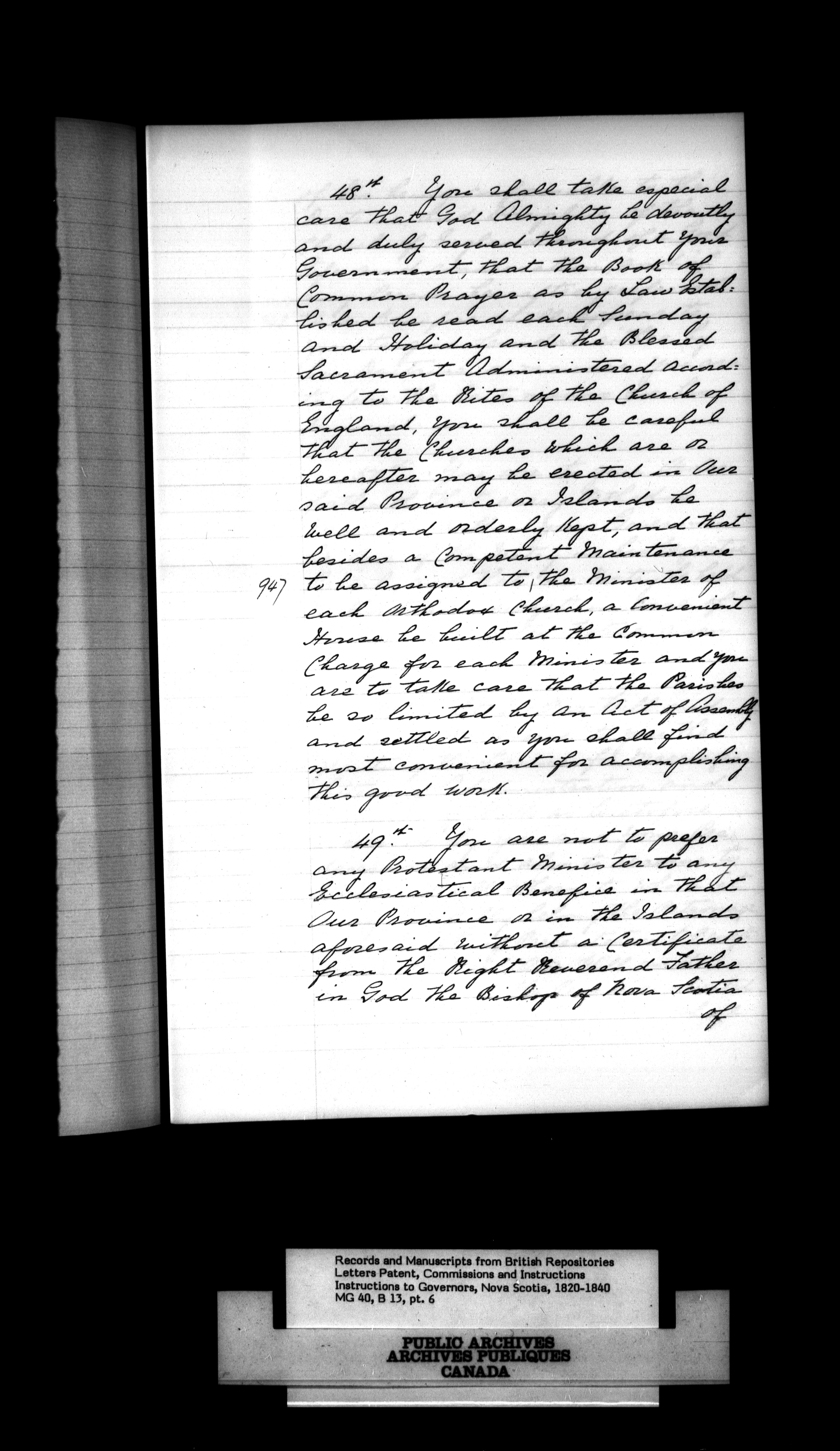 Nova Scotia and Cape Breton, Commissions and Instructions to Governors - 990