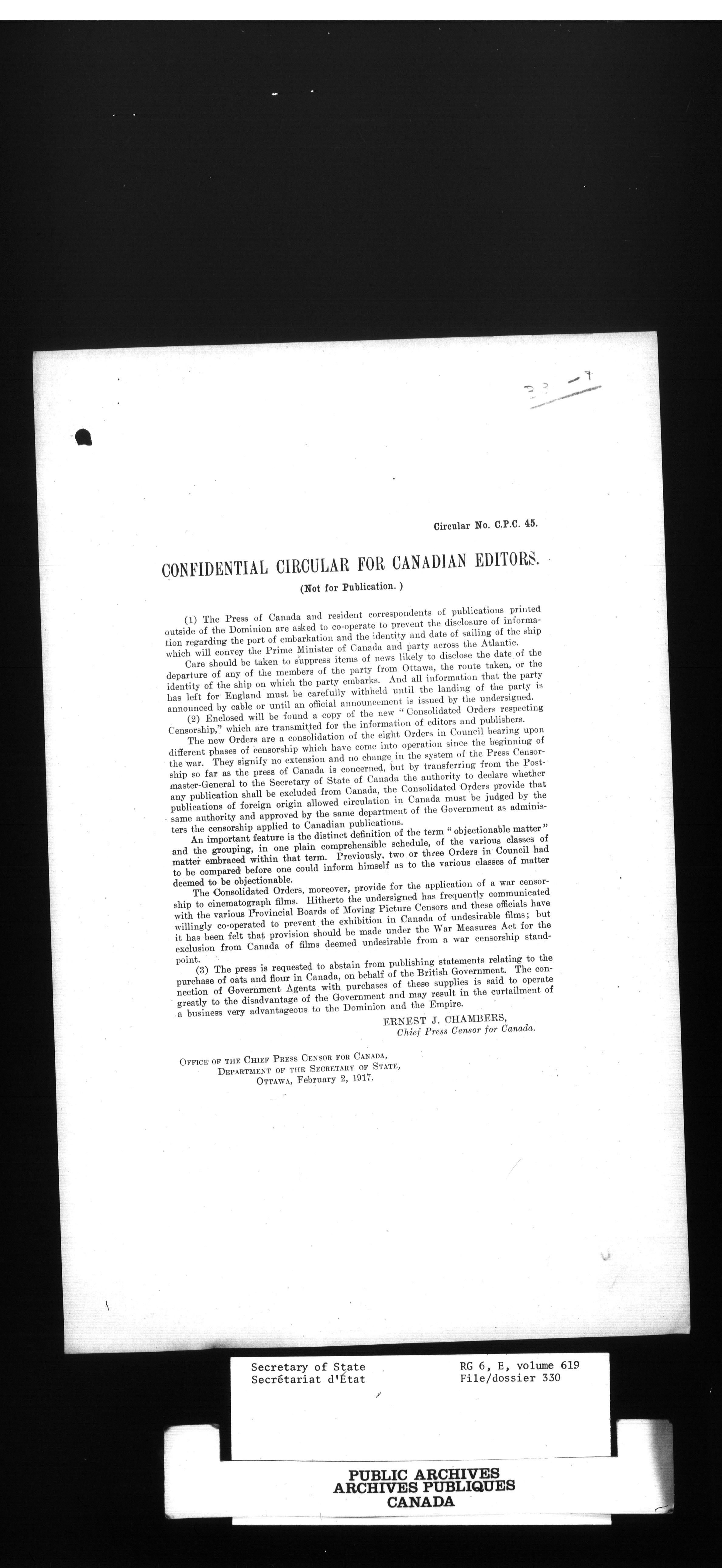 Secretary of State : Chief Press Censor, 1915-1920 - 100