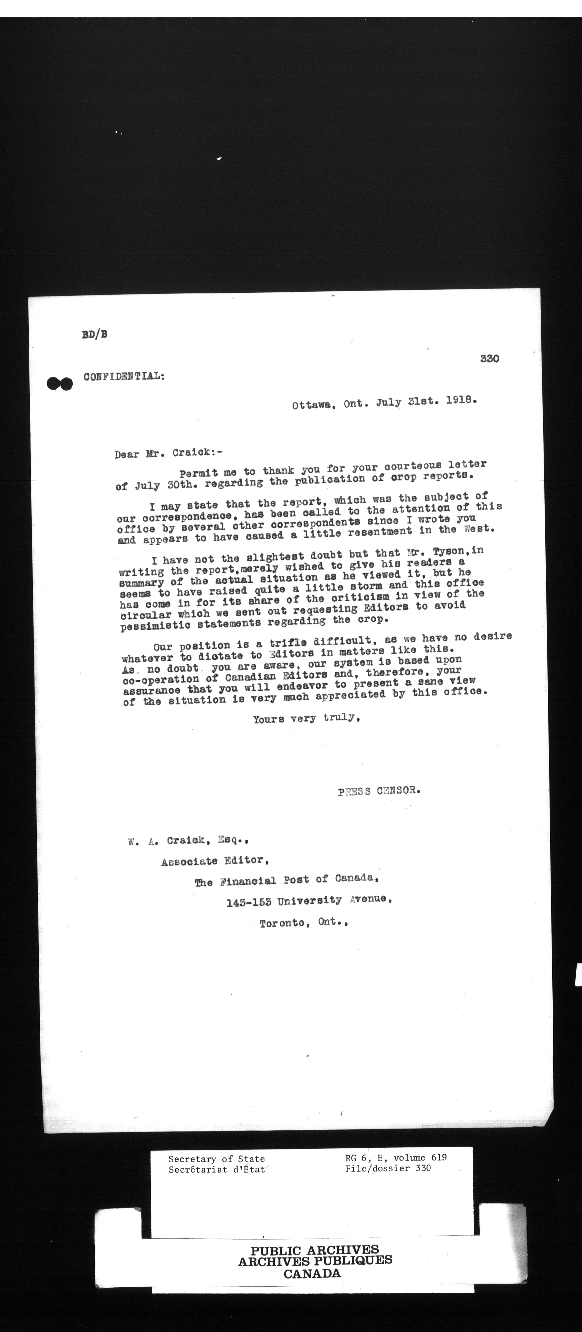 Secretary of State : Chief Press Censor, 1915-1920 - 100