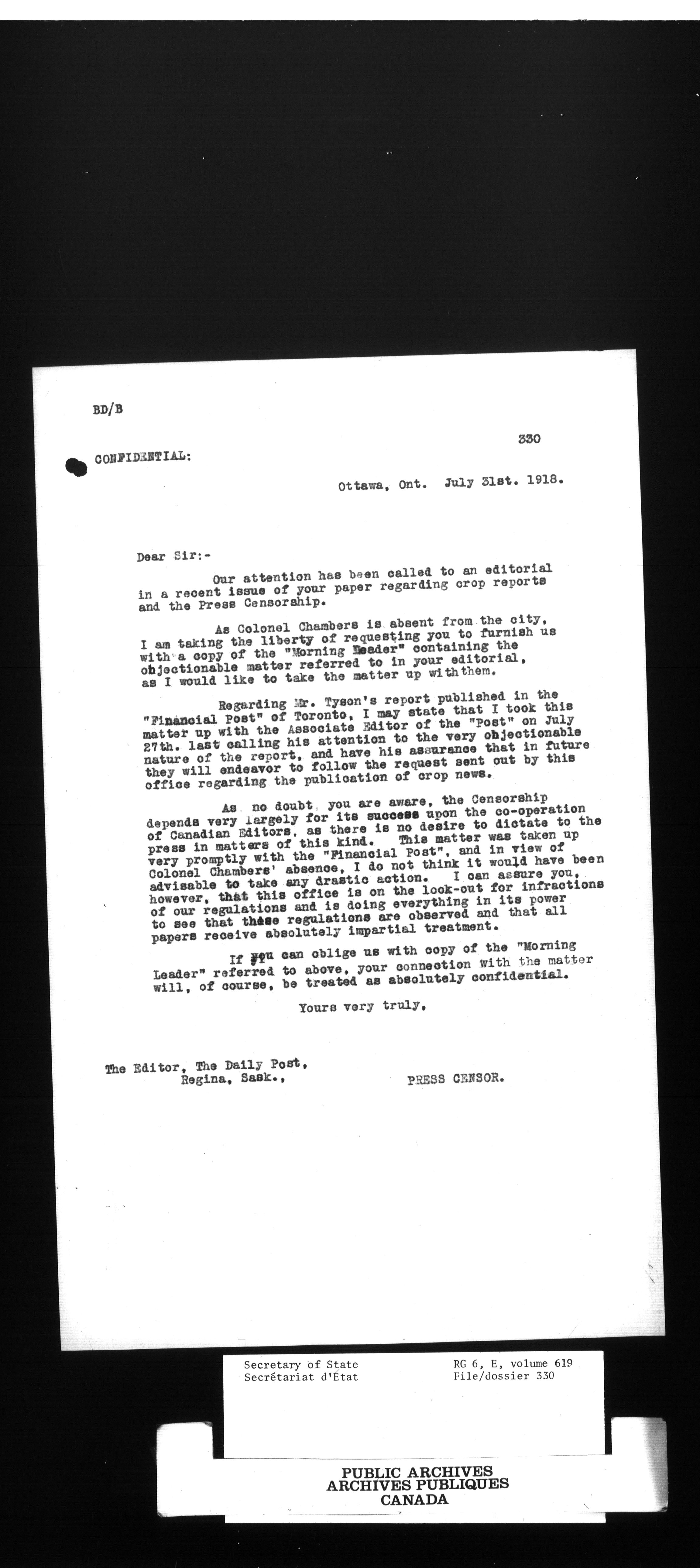 Secretary of State : Chief Press Censor, 1915-1920 - 100