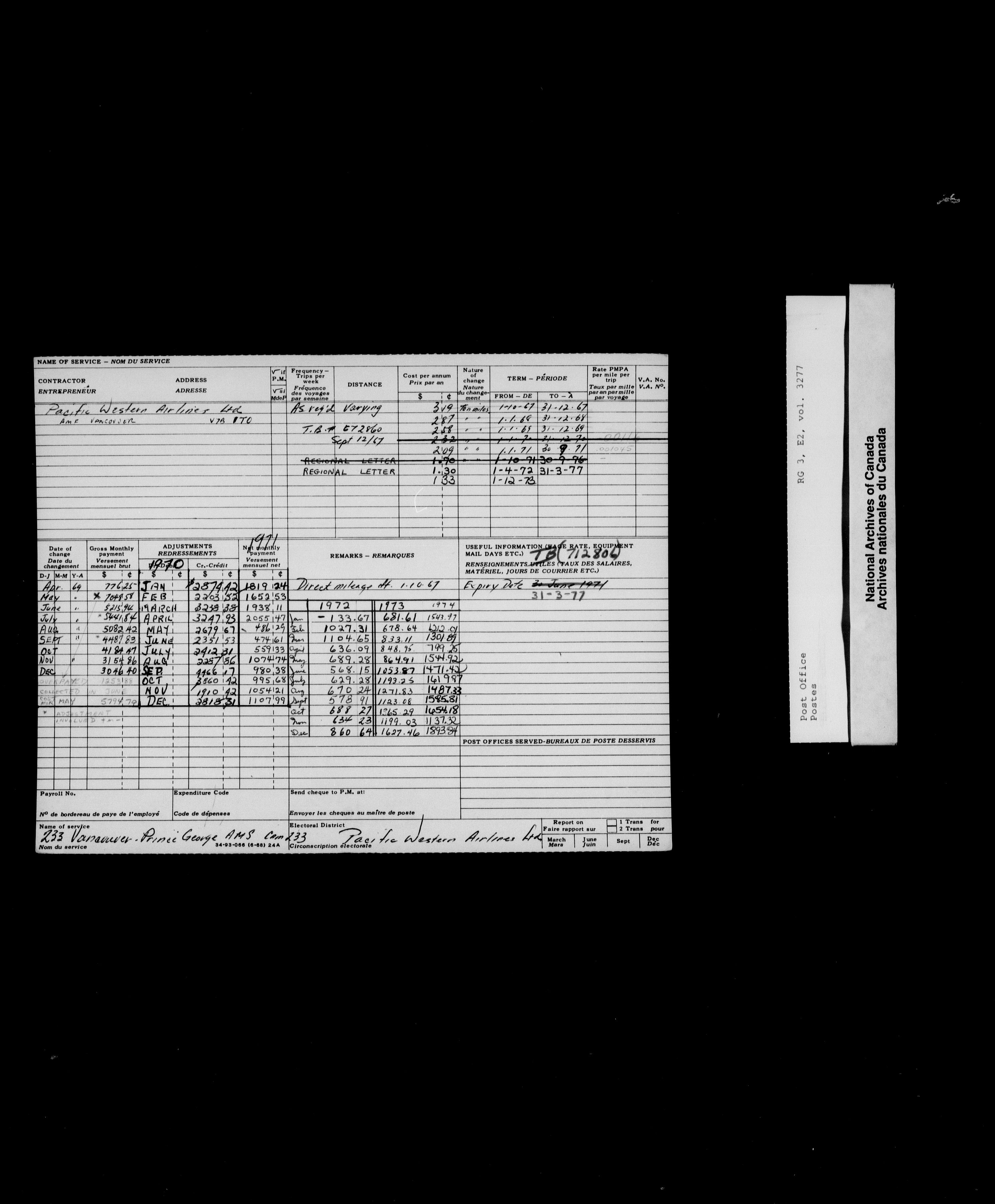 Post Office Department, Transportation Branch : Mail service contract registers, 1839-1980 - 10015