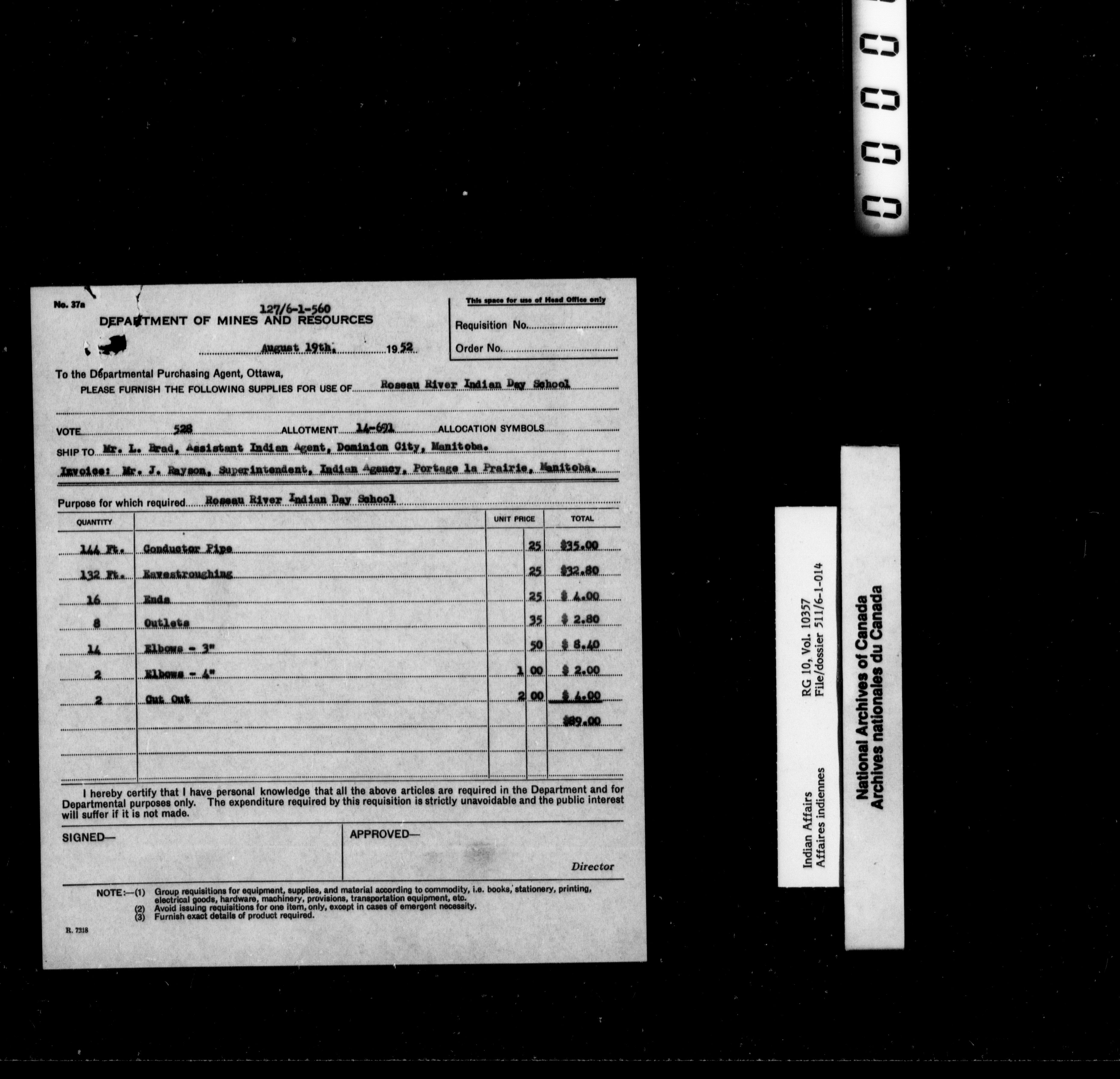 Department of Indian Affairs, Manitoba Regional Office : Central registry files - 10033