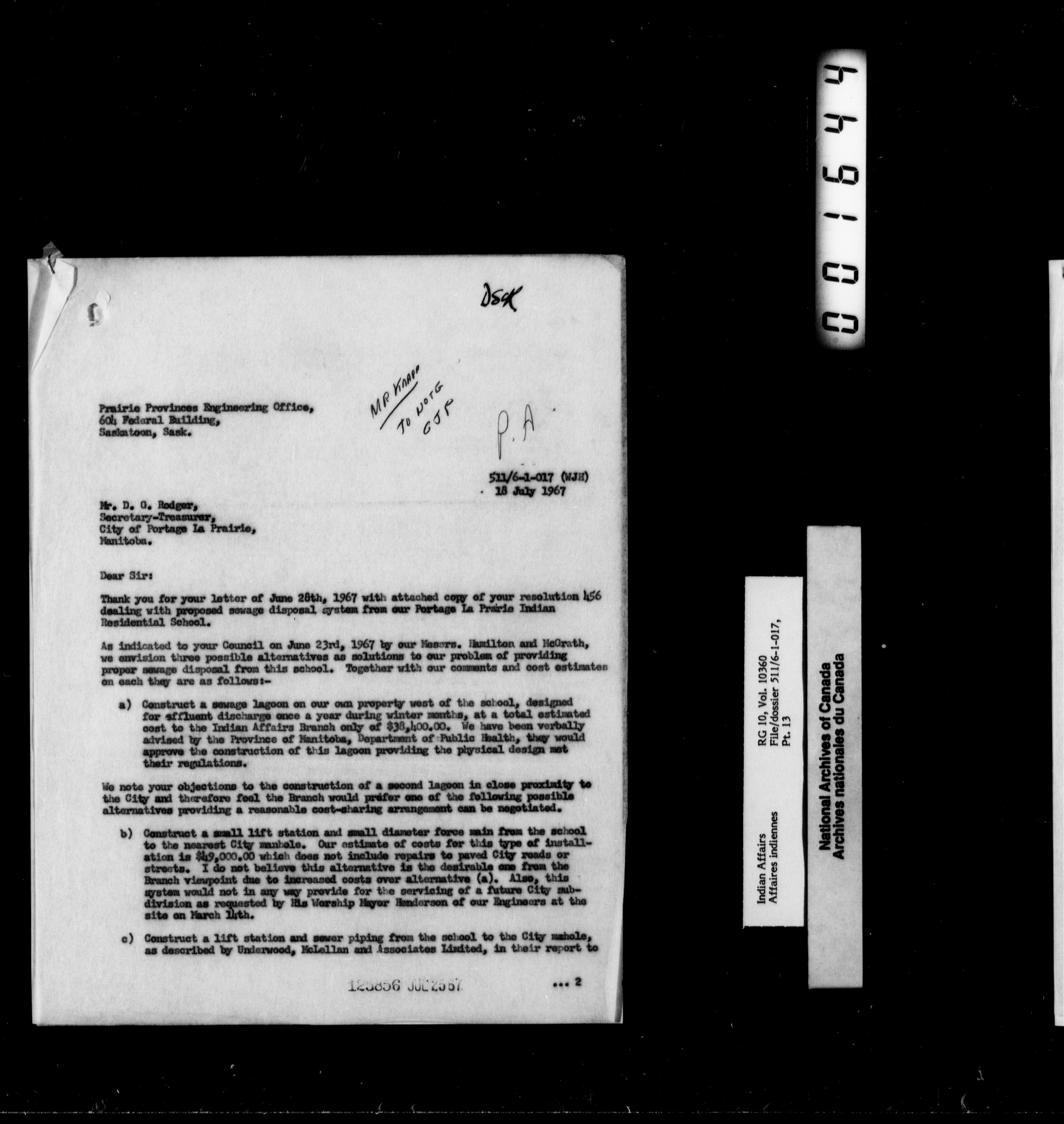 Department of Indian Affairs, Manitoba Regional Office : Central registry files : T-10034