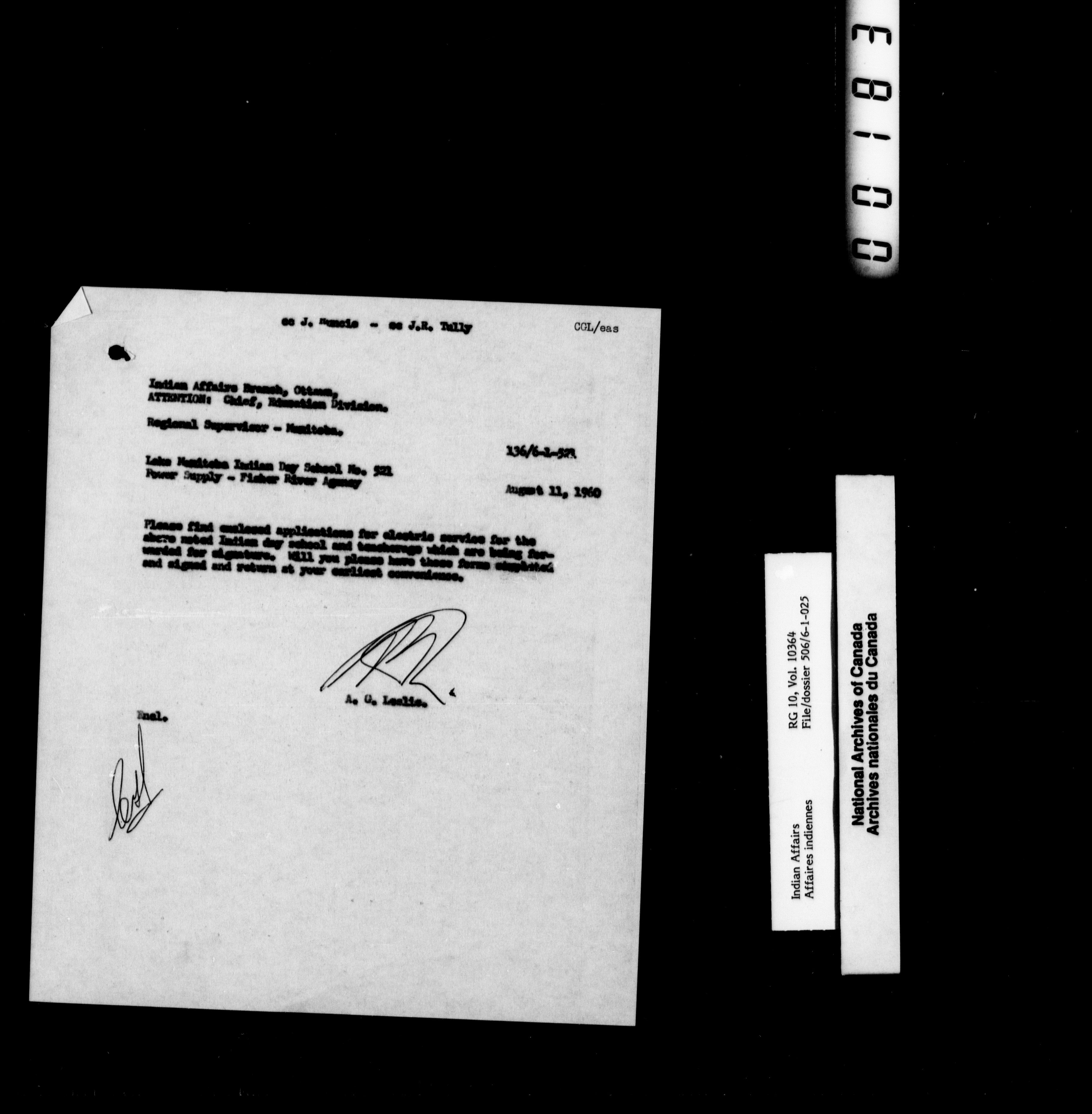 Department of Indian Affairs, Manitoba Regional Office : Central registry files : T-10037