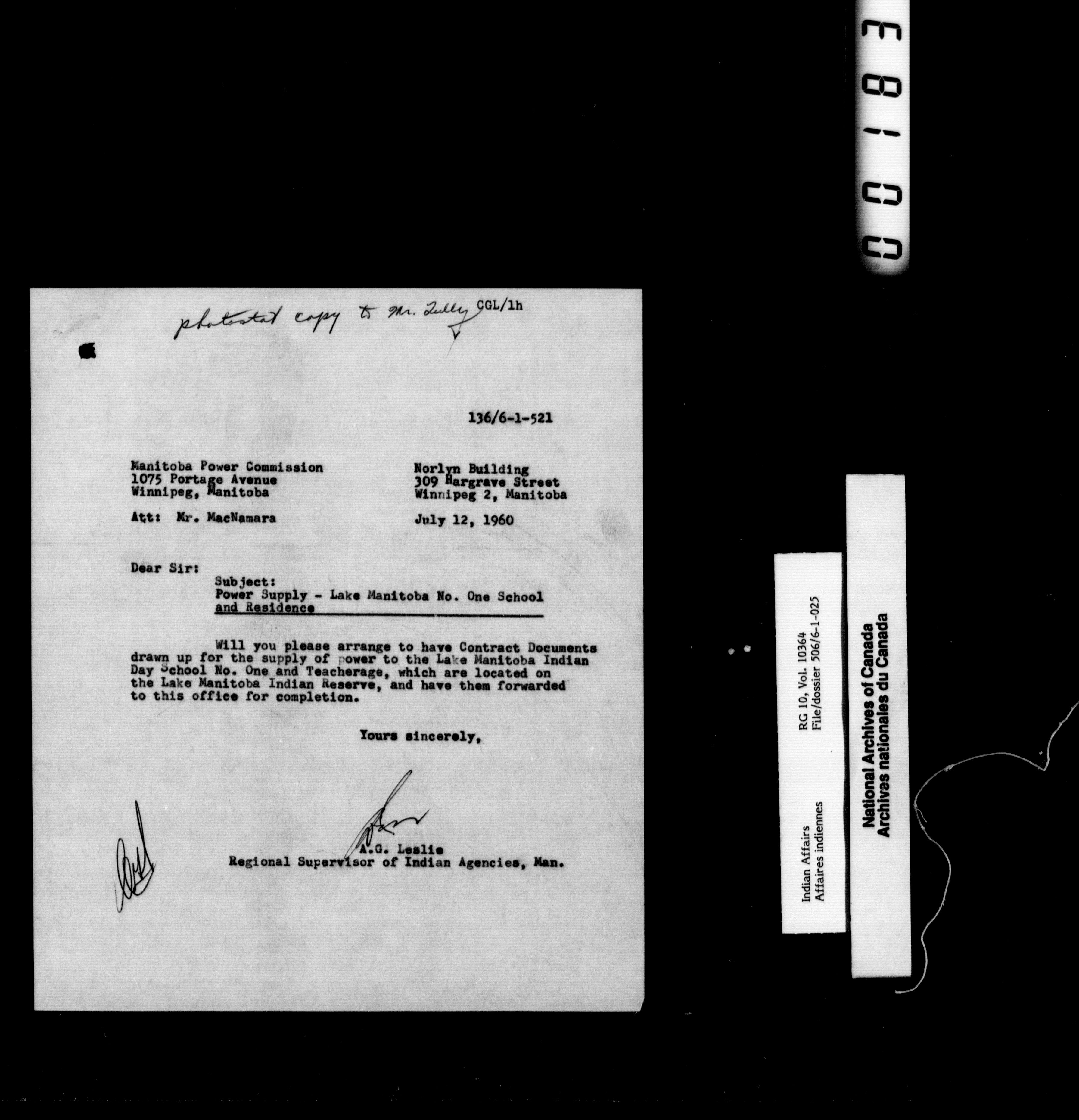 Department of Indian Affairs, Manitoba Regional Office : Central registry files : T-10037