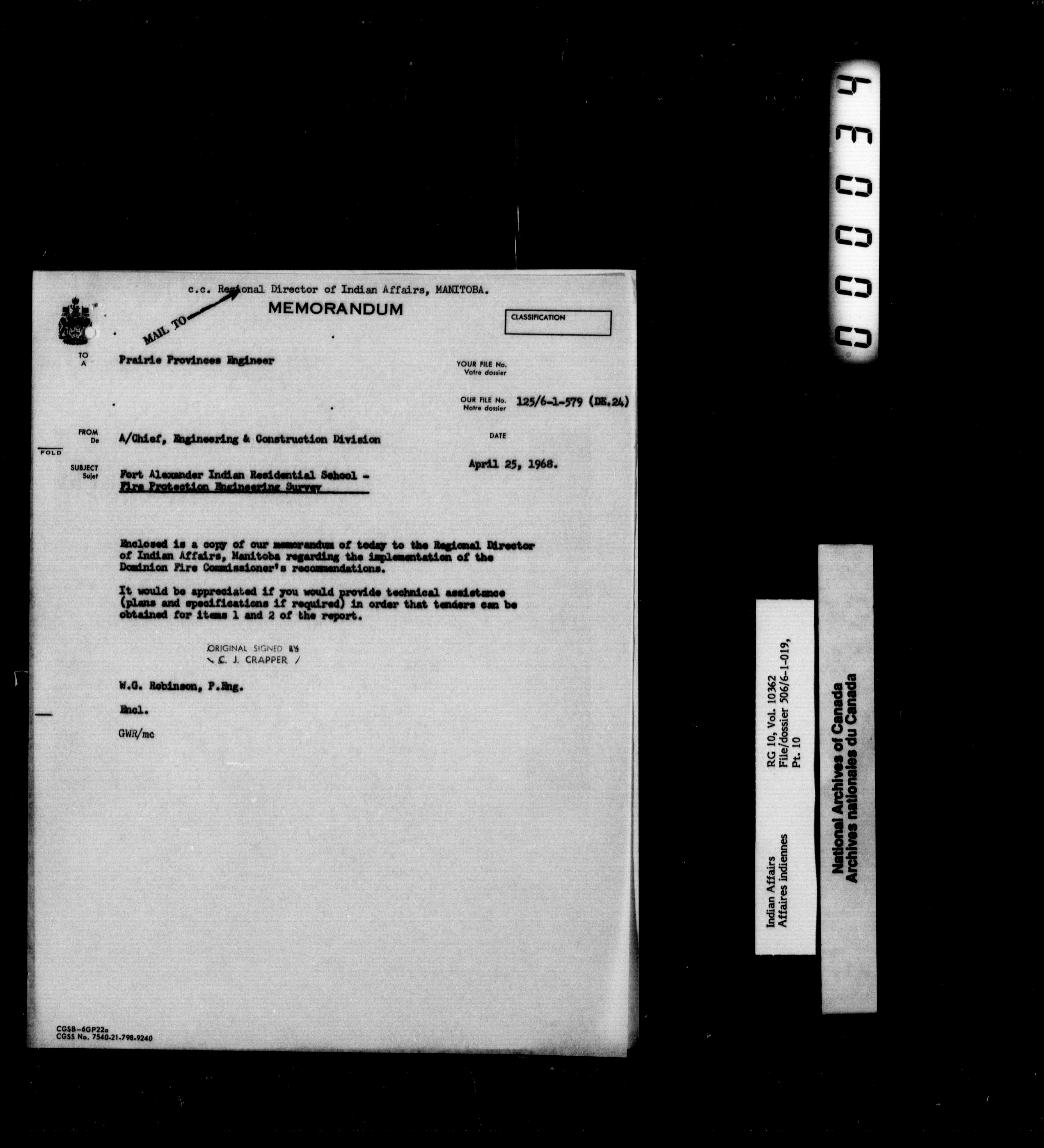 Department of Indian Affairs, Manitoba Regional Office : Central registry files - 10037