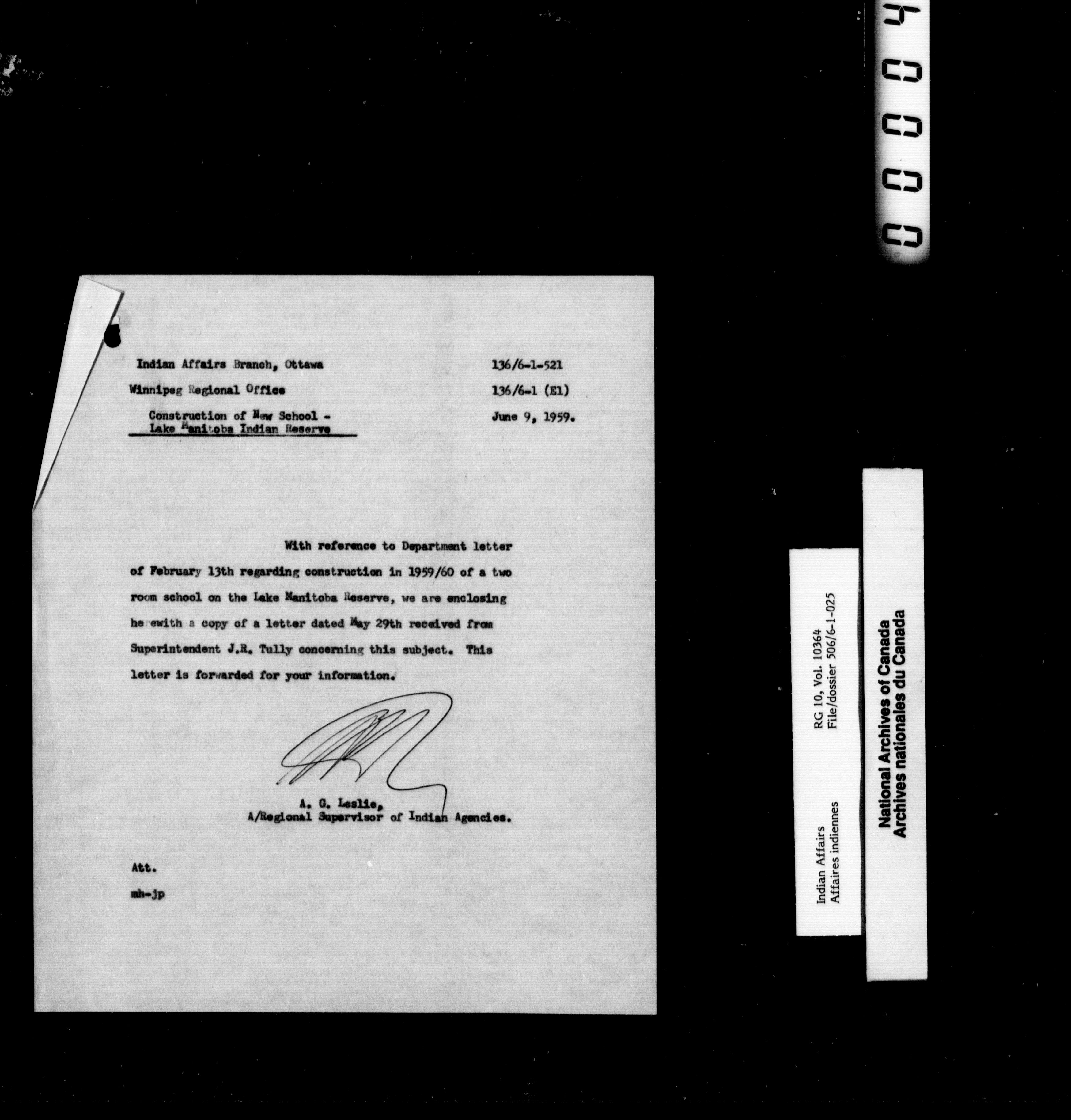 Department of Indian Affairs, Manitoba Regional Office : Central registry files - 10038