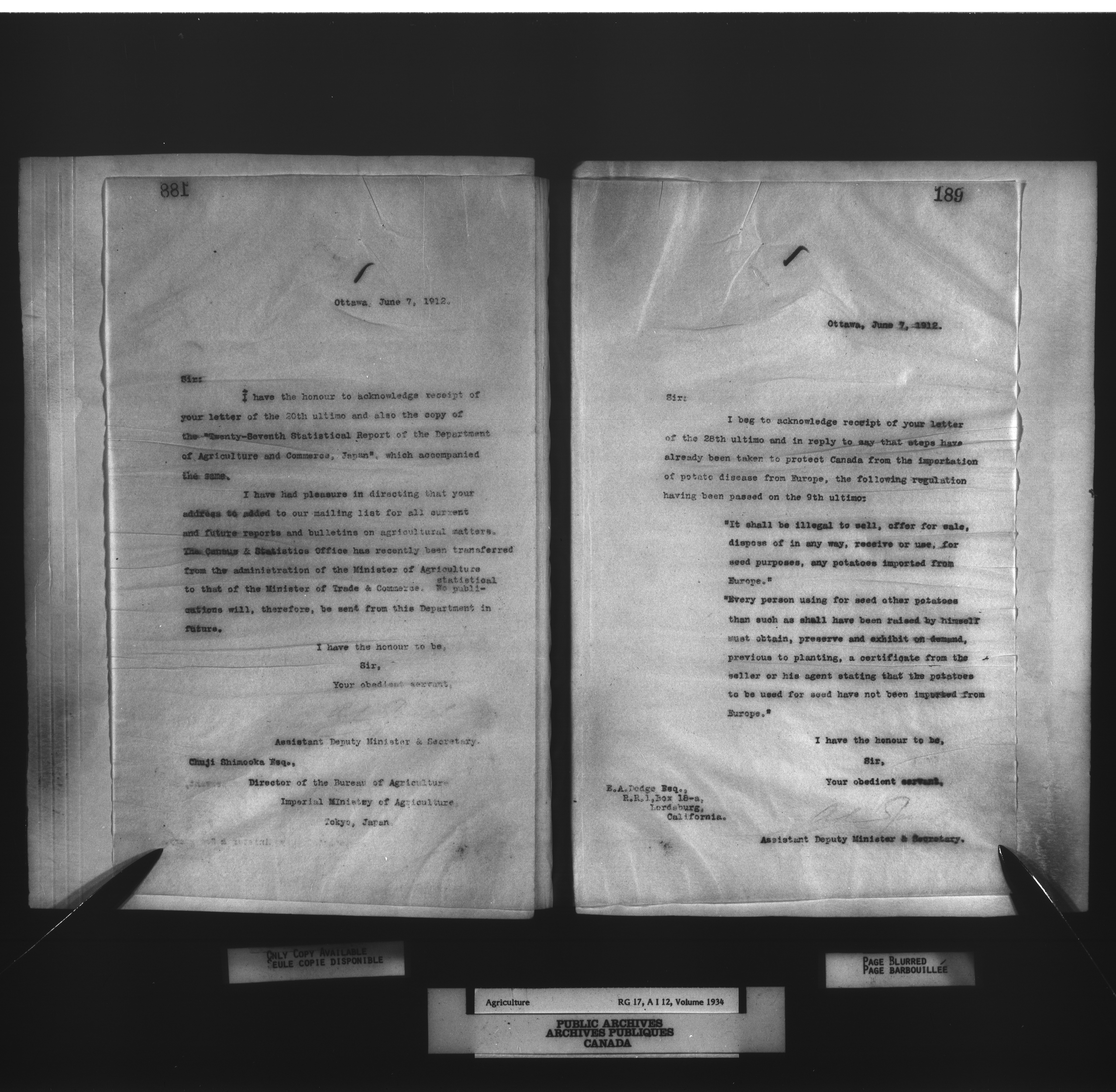 Department of Agriculture : Secretary and Assistant Deputy Minister's letterbooks, 1881-1916 : T-1004