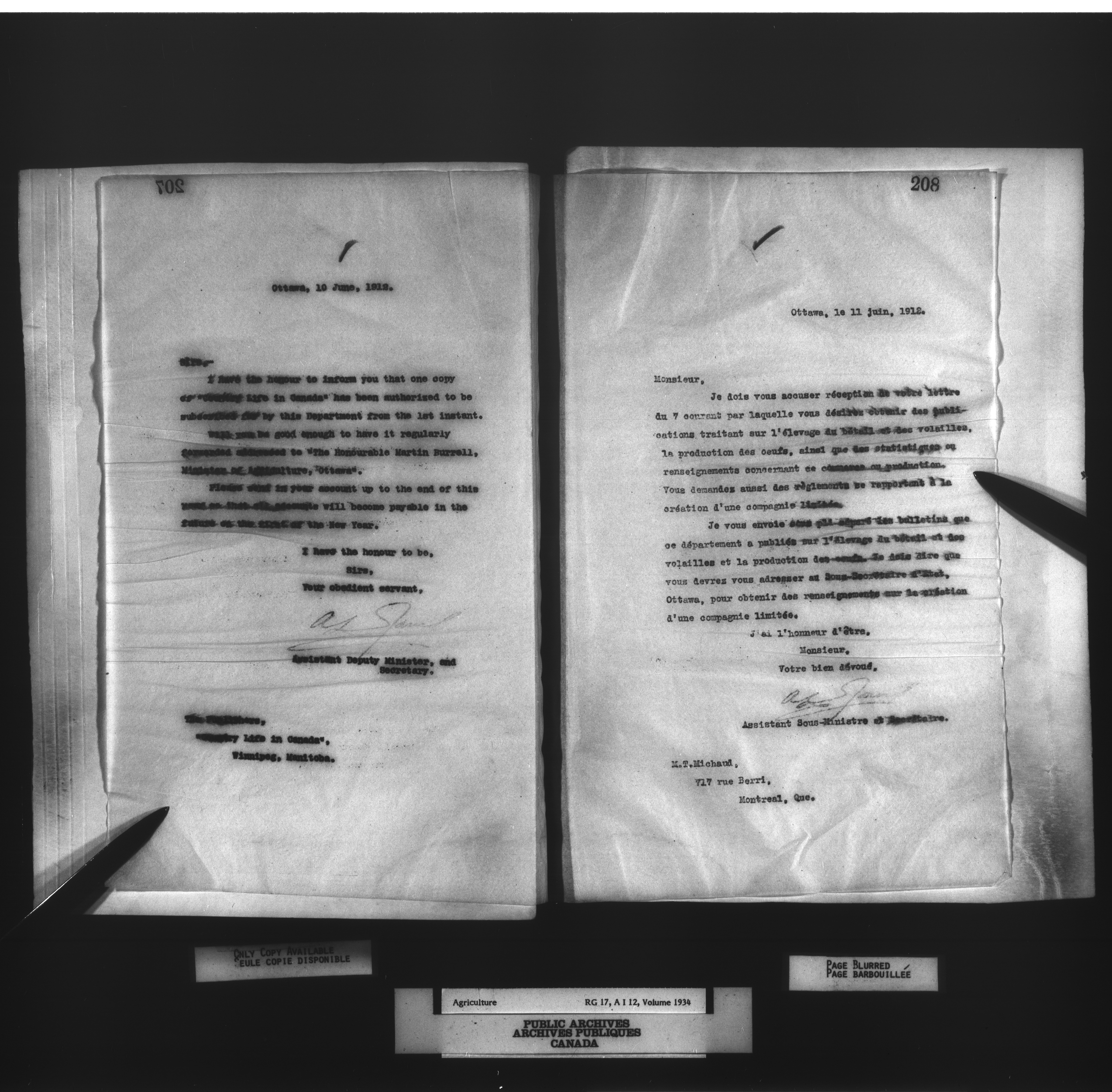 Department of Agriculture : Secretary and Assistant Deputy Minister's letterbooks, 1881-1916 : T-1004