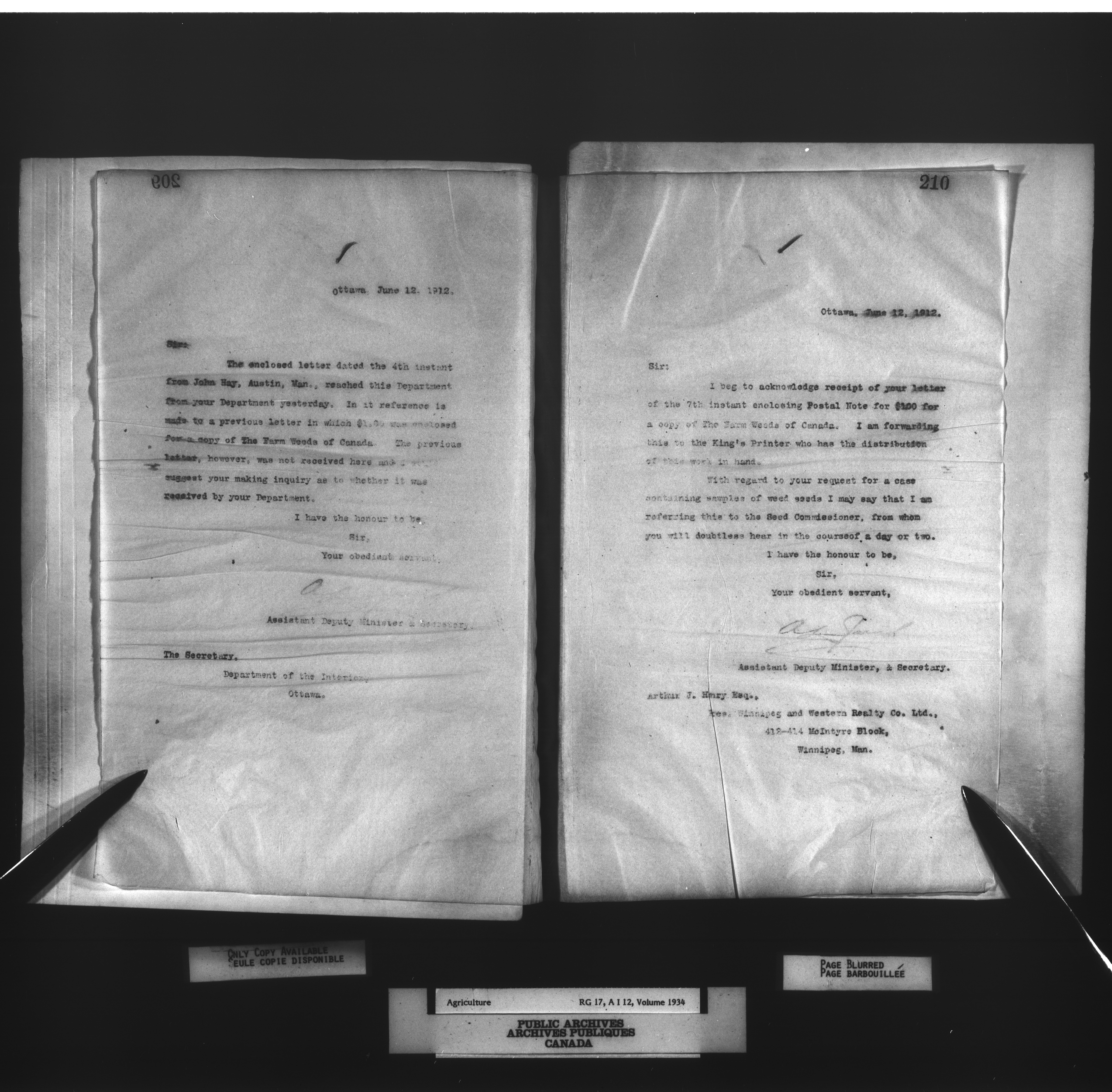 Department of Agriculture : Secretary and Assistant Deputy Minister's letterbooks, 1881-1916 : T-1004