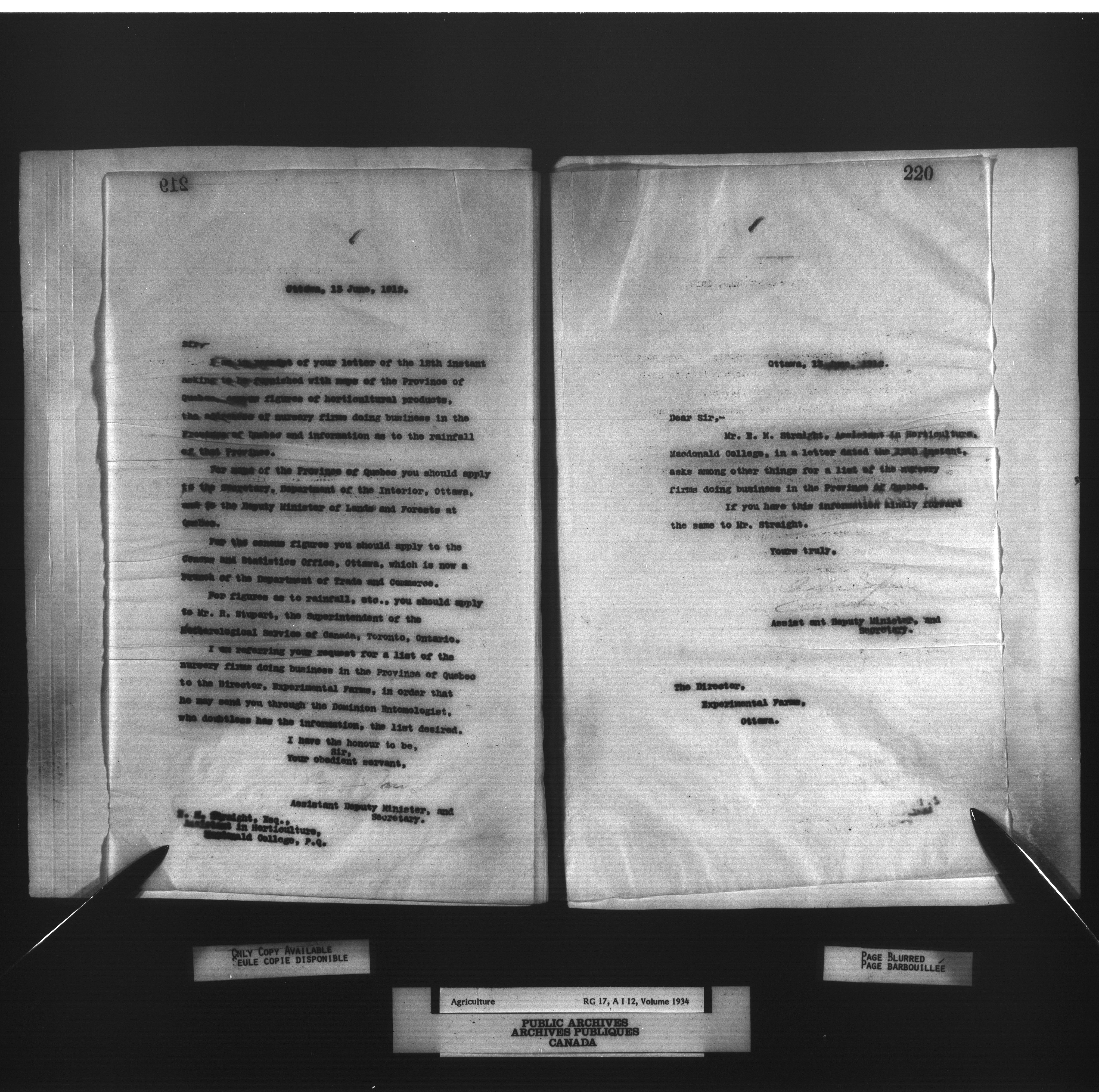 Department of Agriculture : Secretary and Assistant Deputy Minister's letterbooks, 1881-1916 - 1004