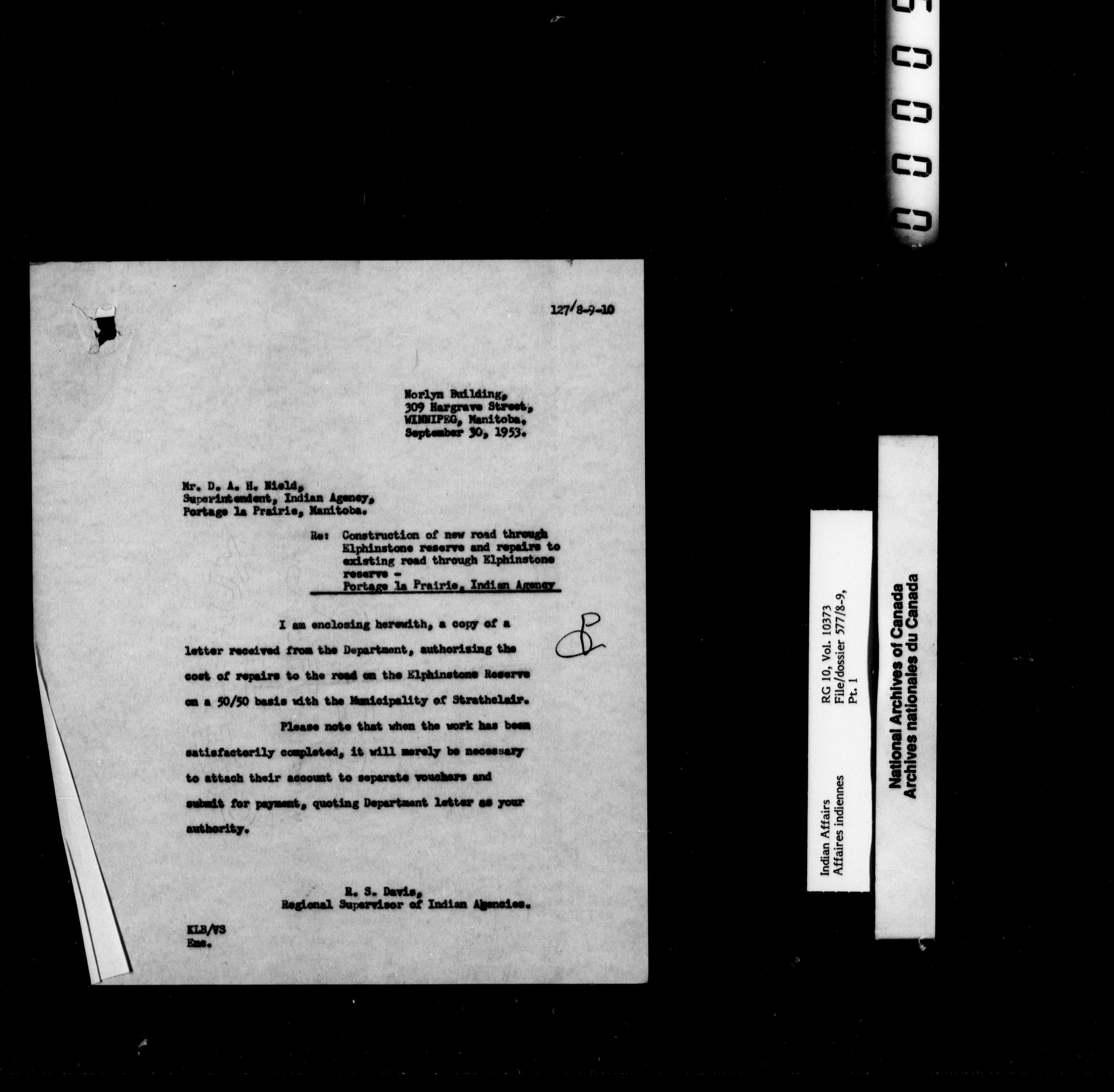 Department of Indian Affairs, Manitoba Regional Office : Central registry files - 10046