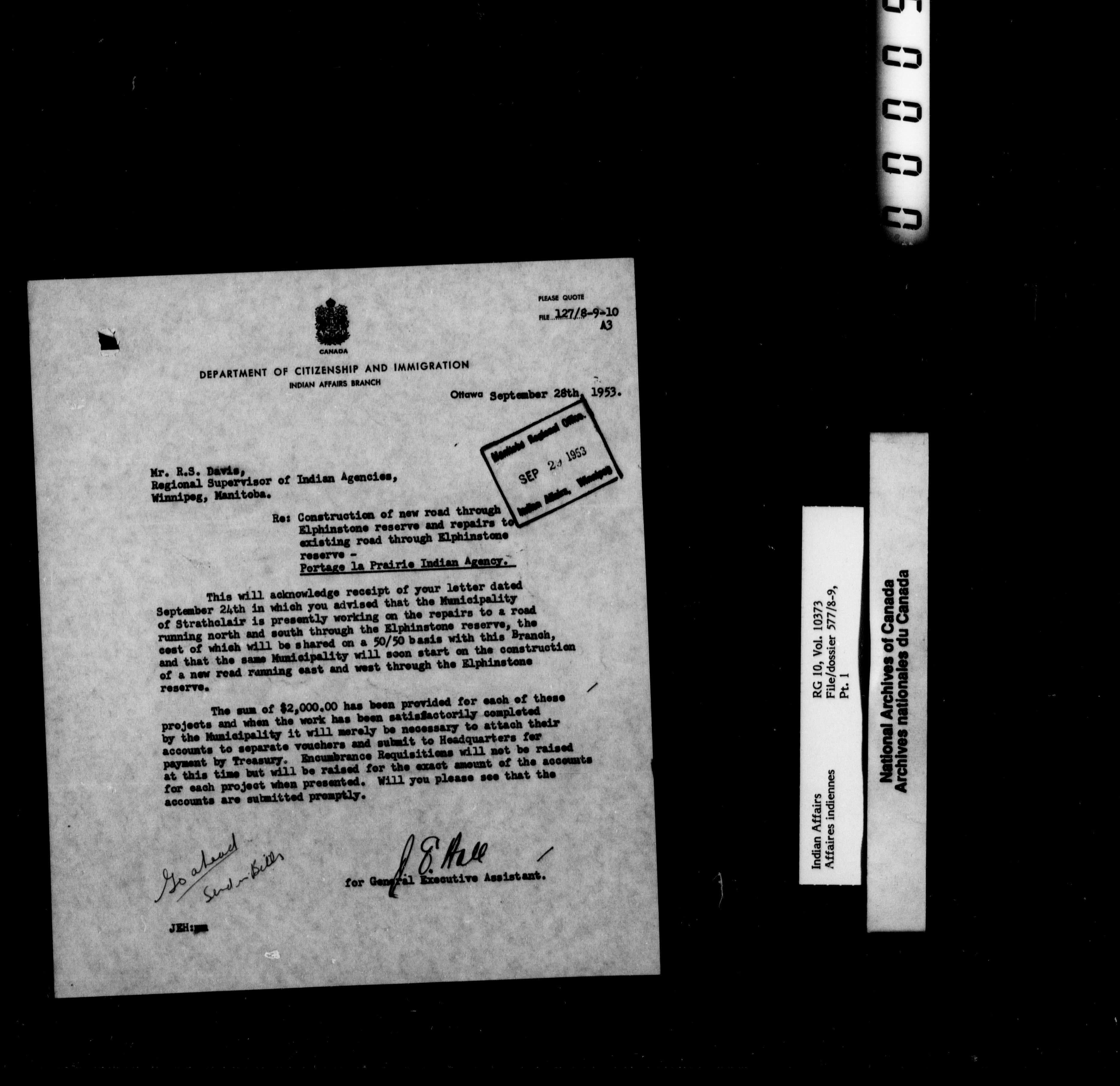 Department of Indian Affairs, Manitoba Regional Office : Central registry files - 10046