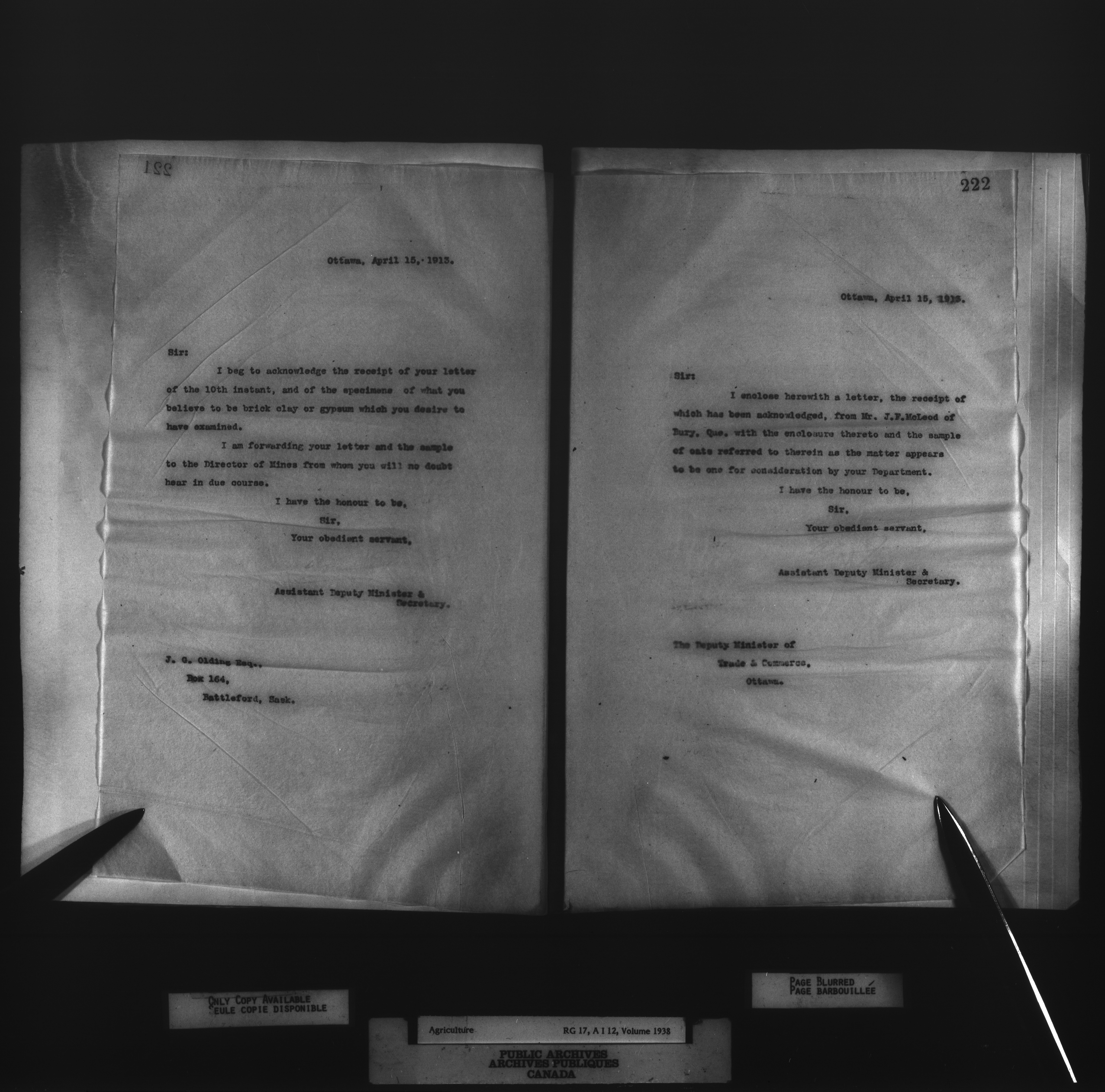 Department of Agriculture : Secretary and Assistant Deputy Minister's letterbooks, 1881-1916 - 1005