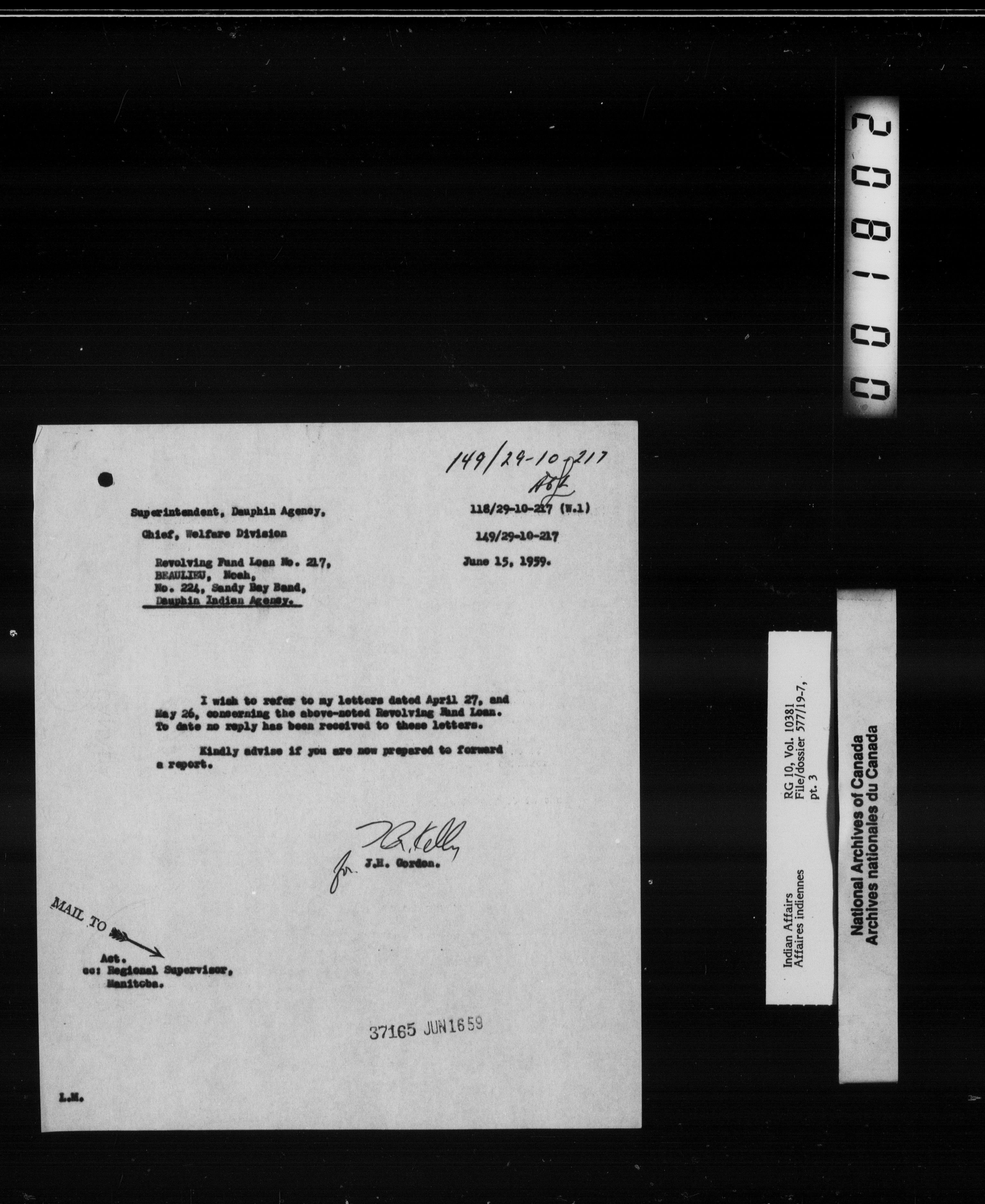 Department of Indian Affairs, Manitoba Regional Office : Central registry files - 10052