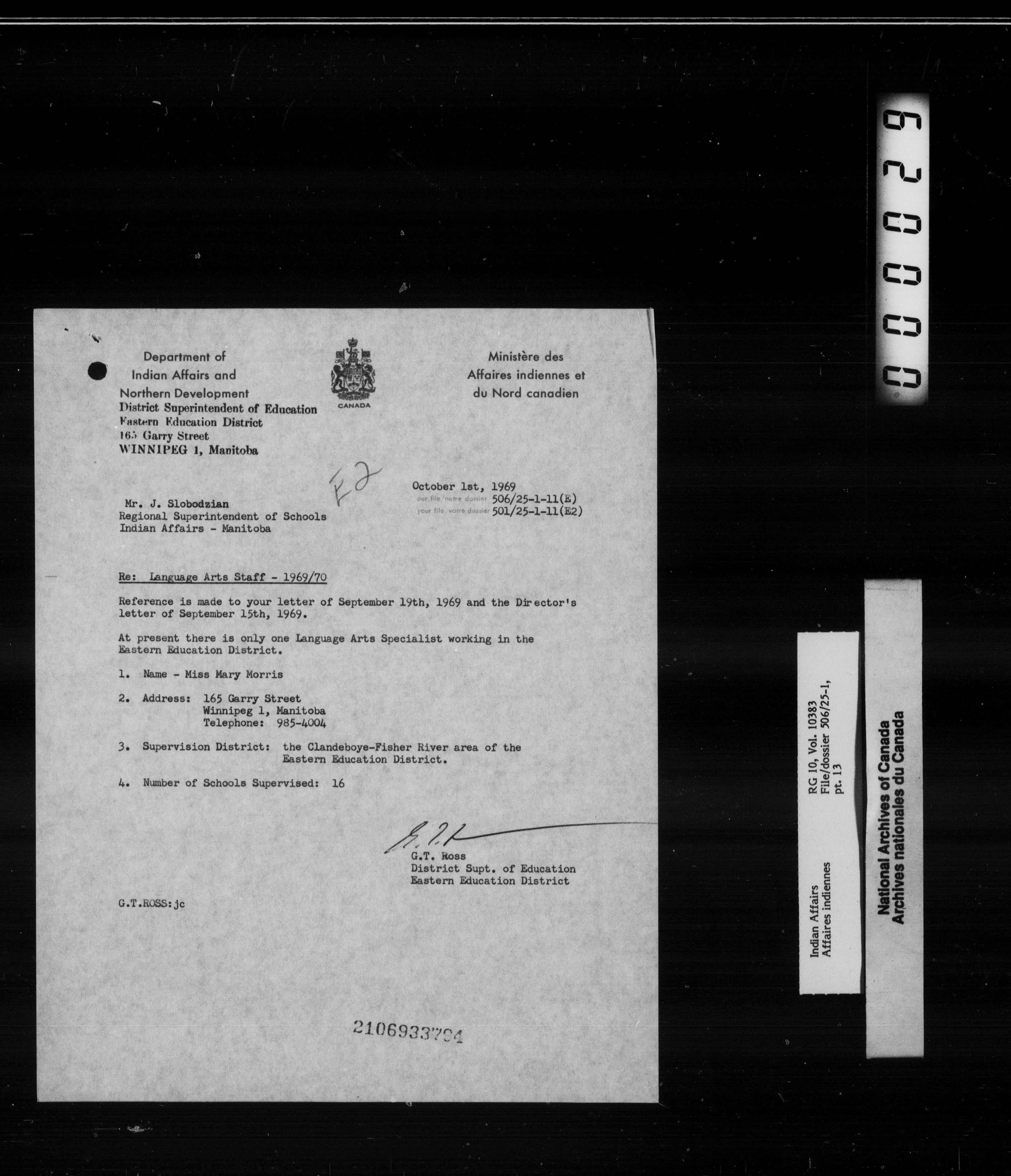 Department of Indian Affairs, Manitoba Regional Office : Central registry files - 10054