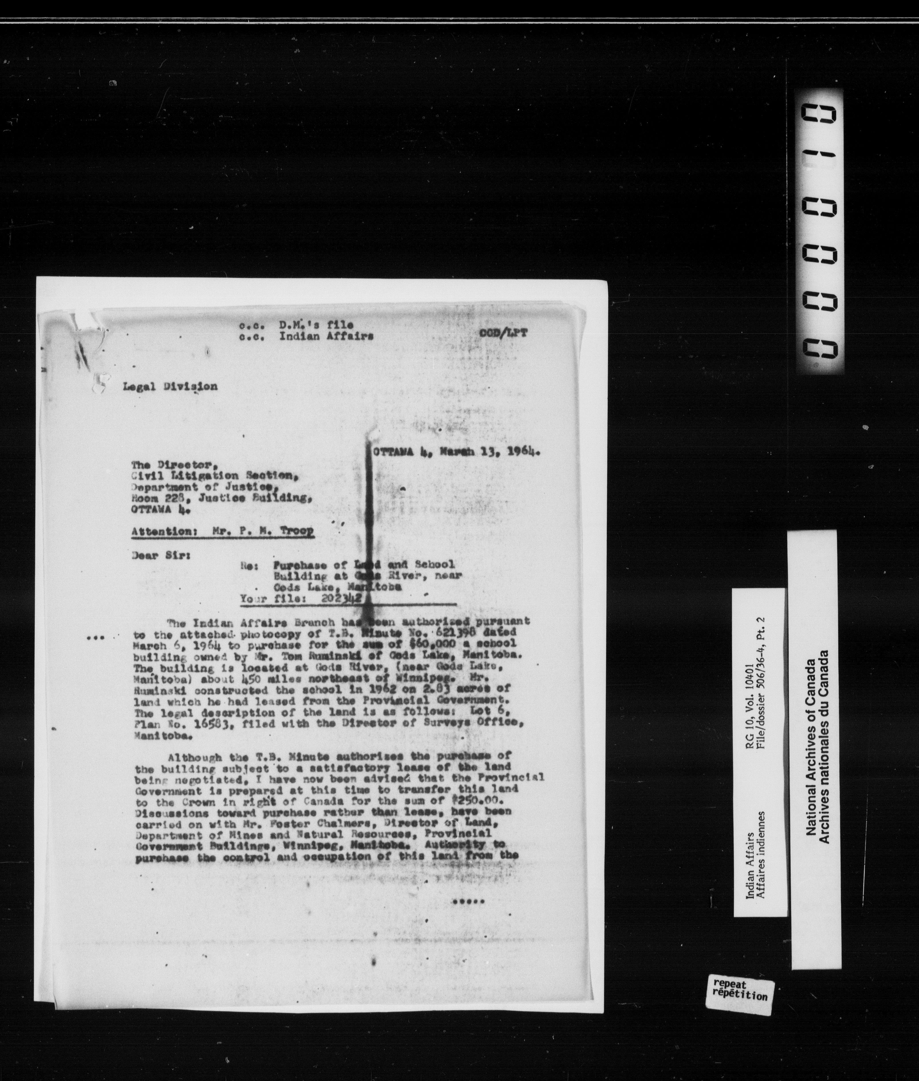Department of Indian Affairs, Manitoba Regional Office : Central registry files : T-10060