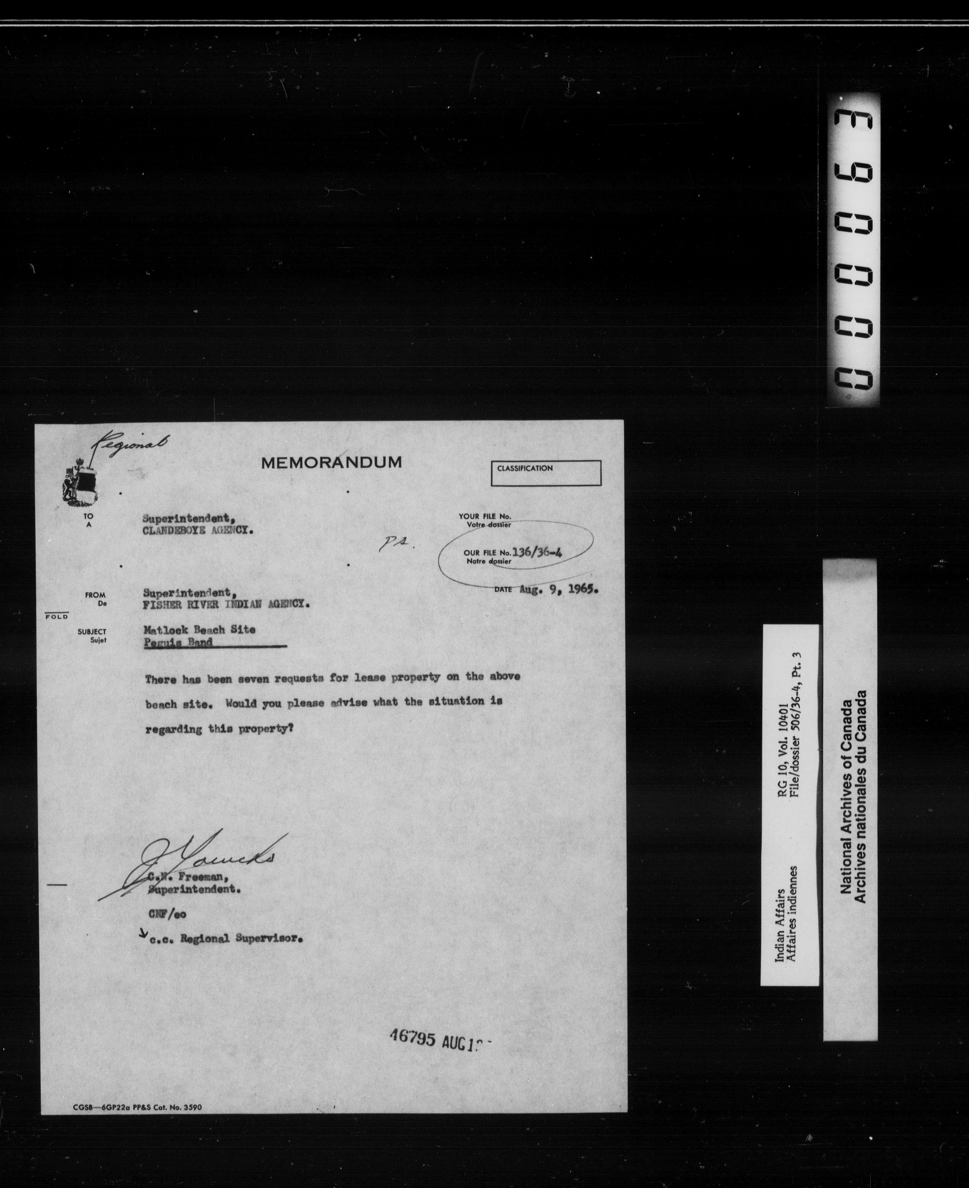 Department of Indian Affairs, Manitoba Regional Office : Central registry files - 10060