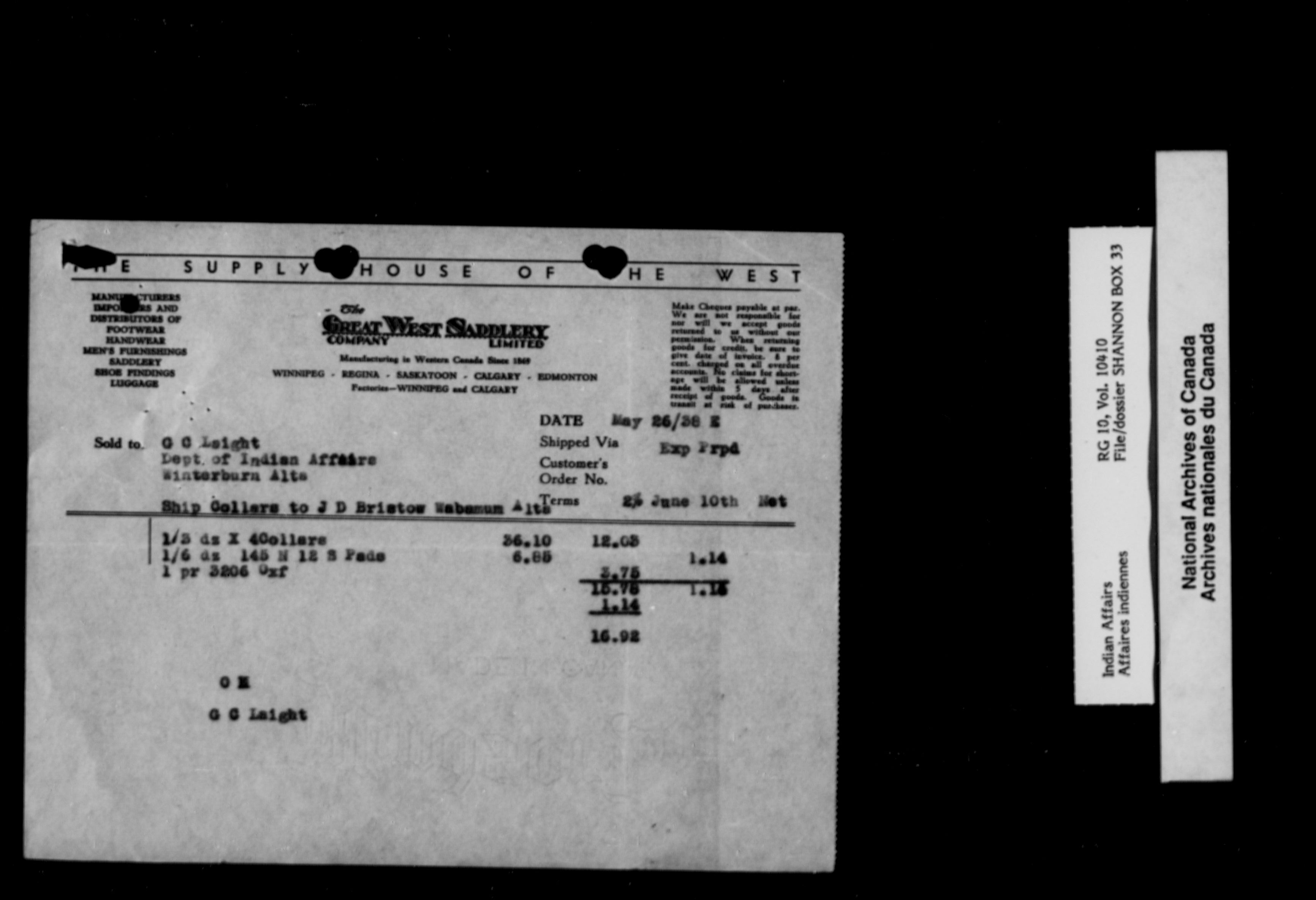 Department of Indian Affairs : Edmonton Agency (Volume 10410, file Shannon box 33 to vol. 10411, Shannon box 36) - 10068
