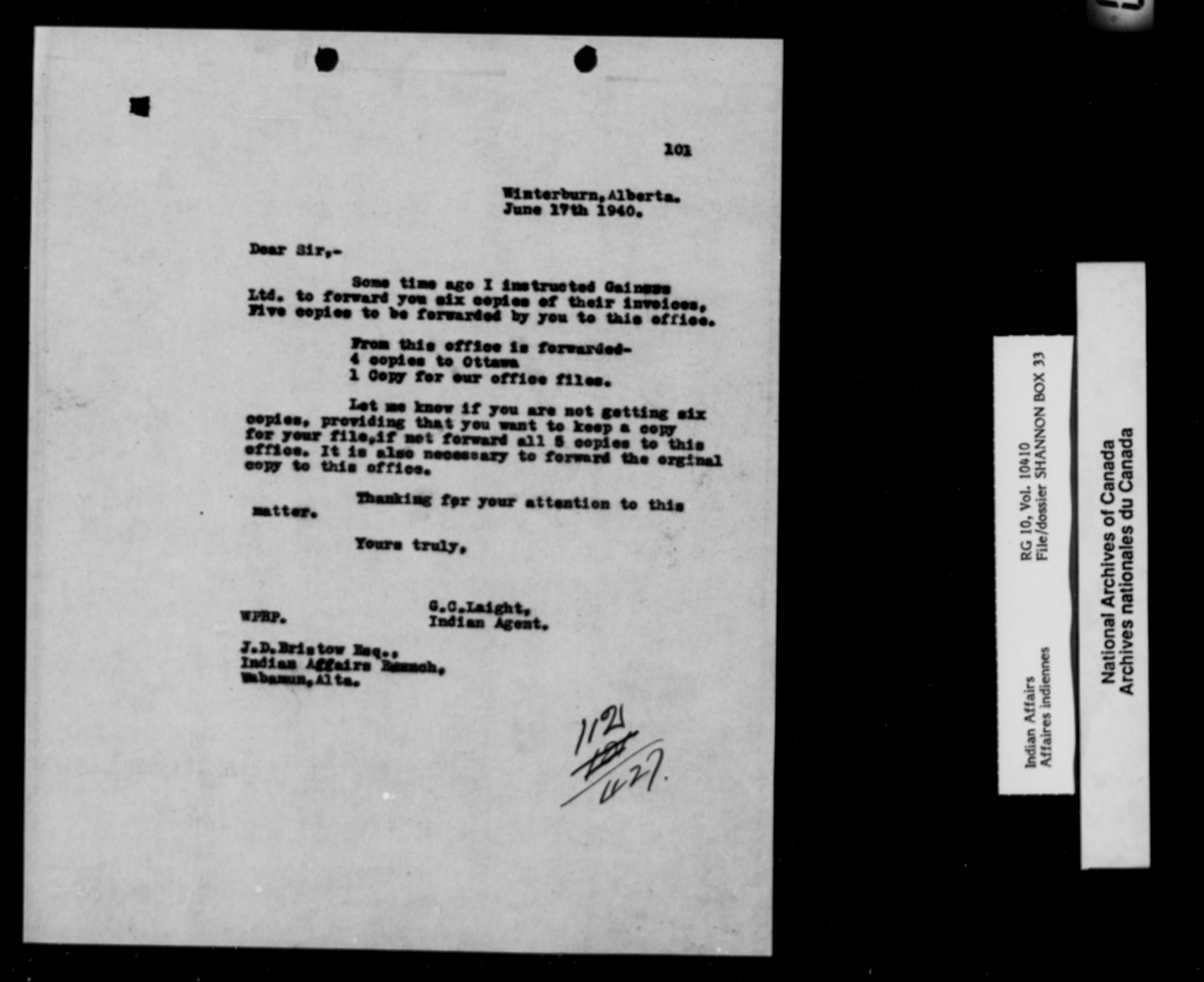 Department of Indian Affairs : Edmonton Agency (Volume 10410, file Shannon box 33 to vol. 10411, Shannon box 36) - 10068