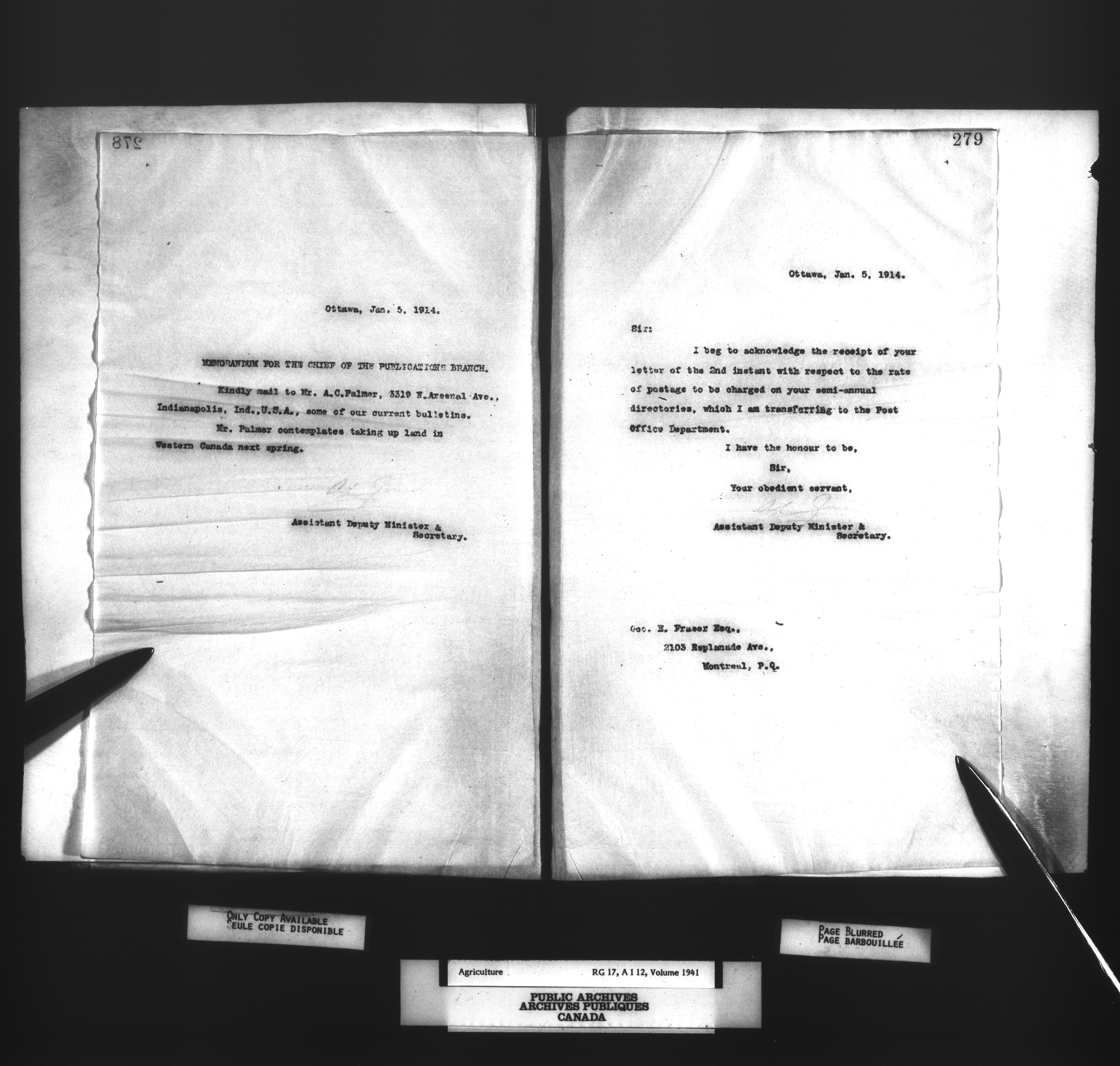 Department of Agriculture : Secretary and Assistant Deputy Minister's letterbooks, 1881-1916 - 1007