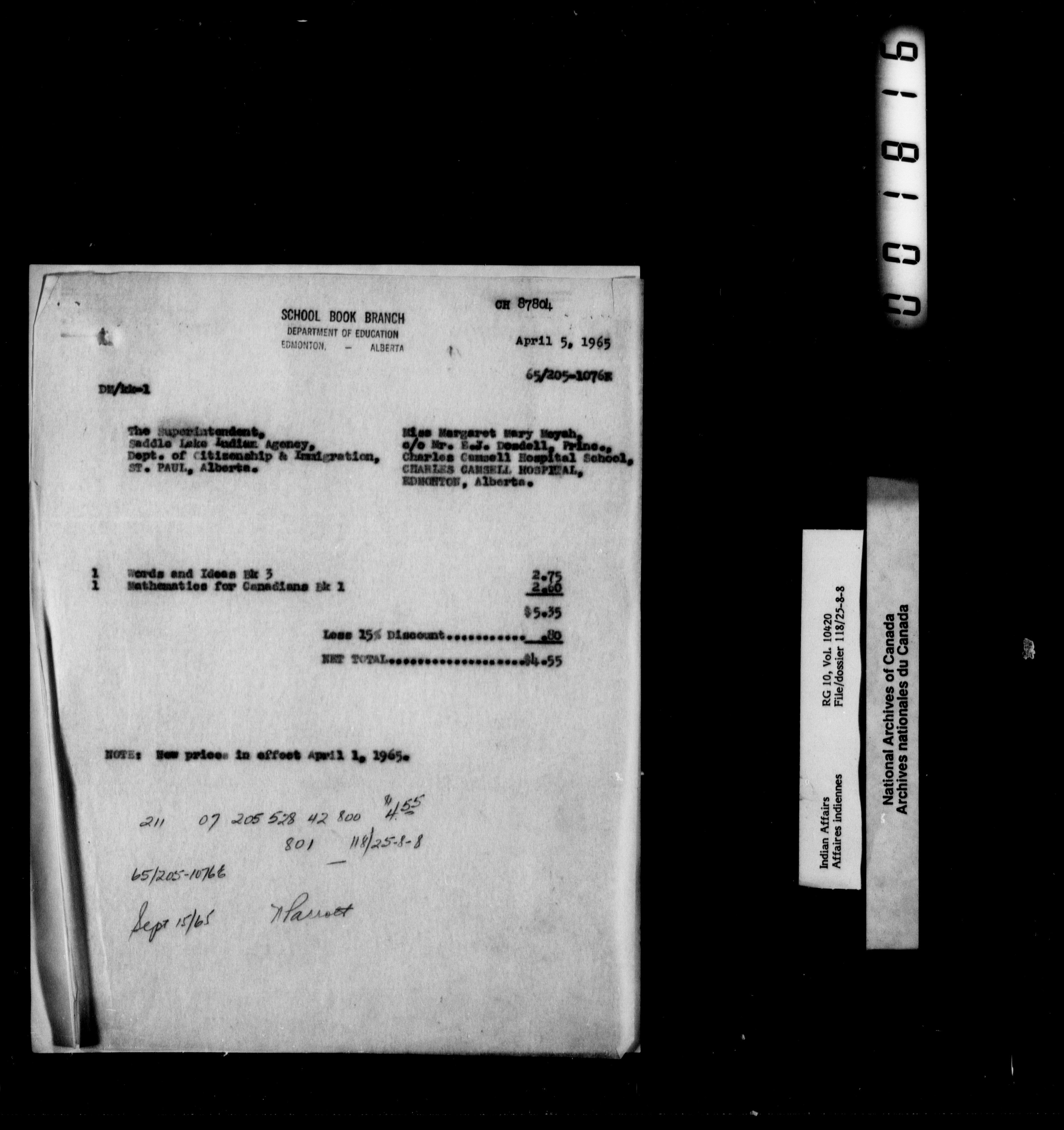 Department of Indian Affairs : Edmonton, Saddle Lake and Athabaska Agencies - 10073