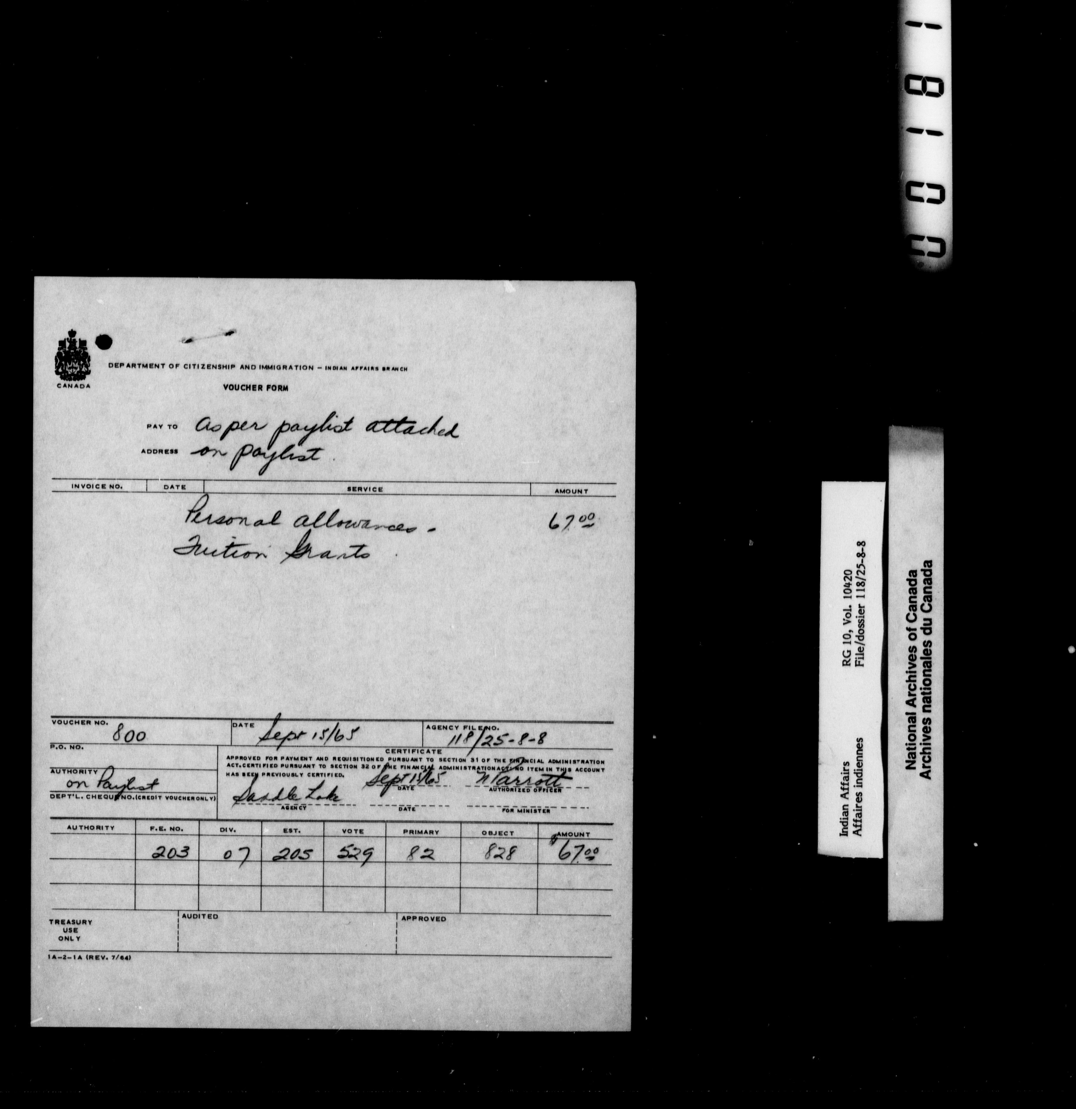 Department of Indian Affairs : Edmonton, Saddle Lake and Athabaska Agencies - 10073