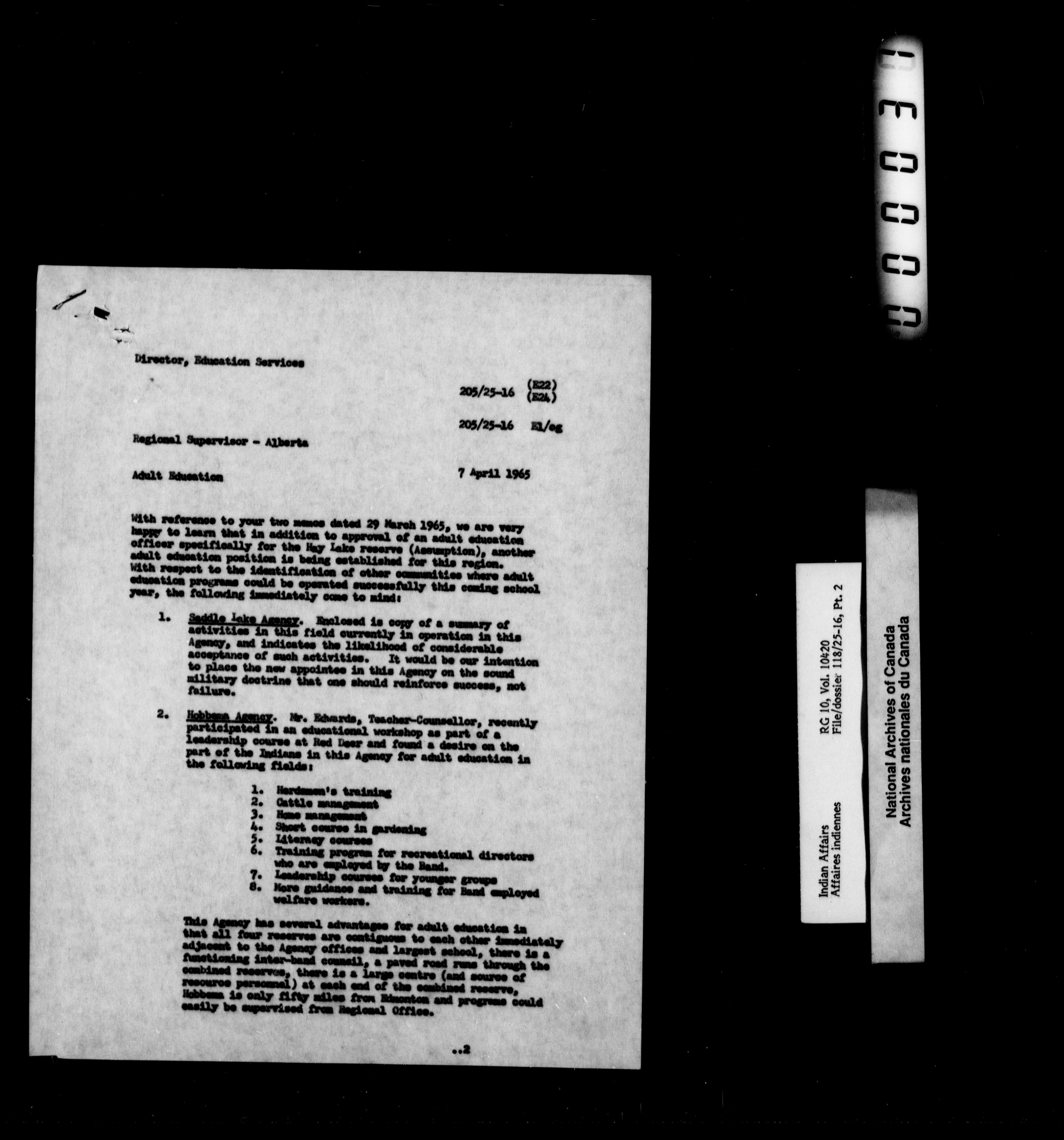 Department of Indian Affairs : Saddle Lake Agency : T-10074