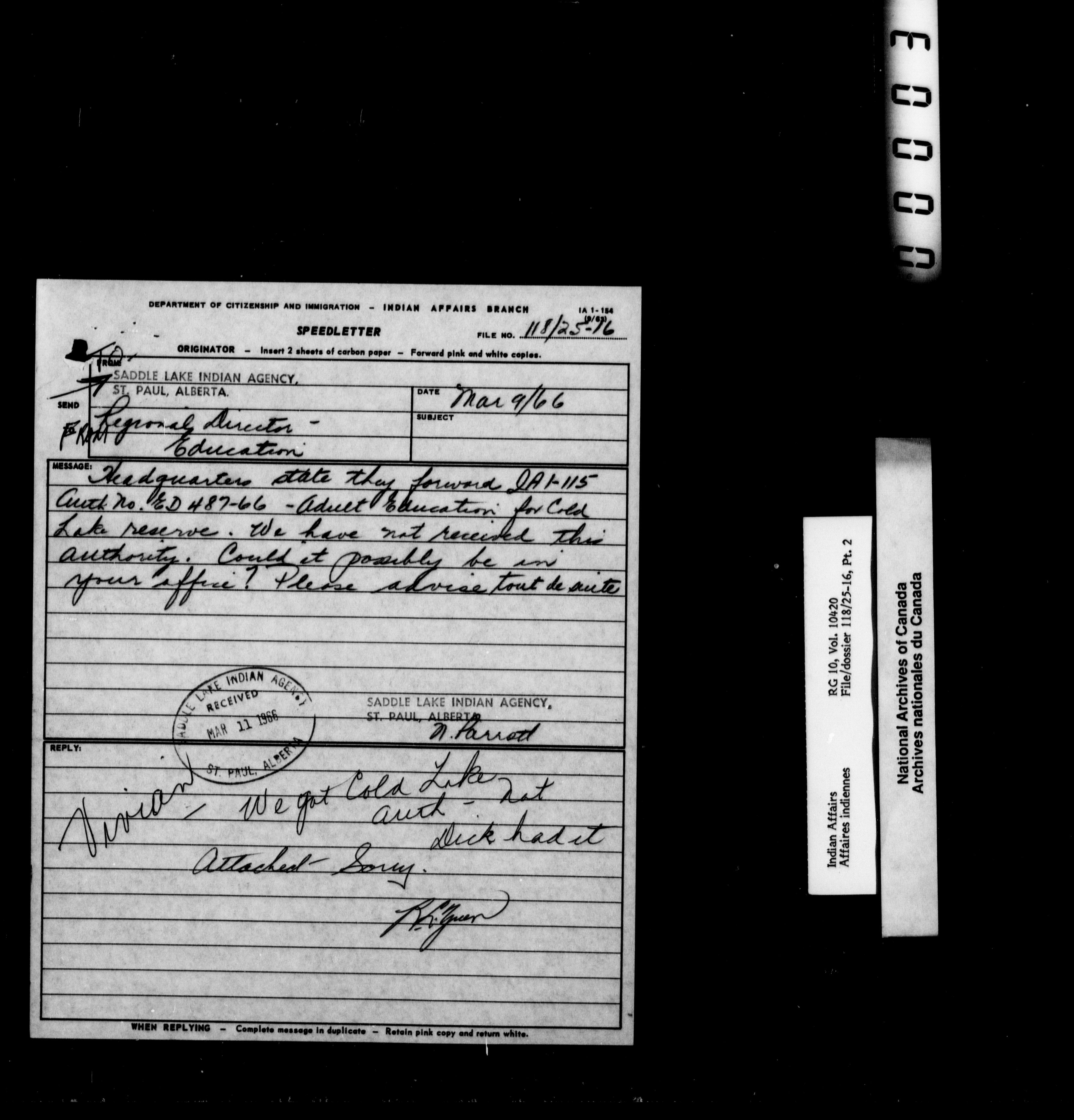Department of Indian Affairs : Saddle Lake Agency : T-10074