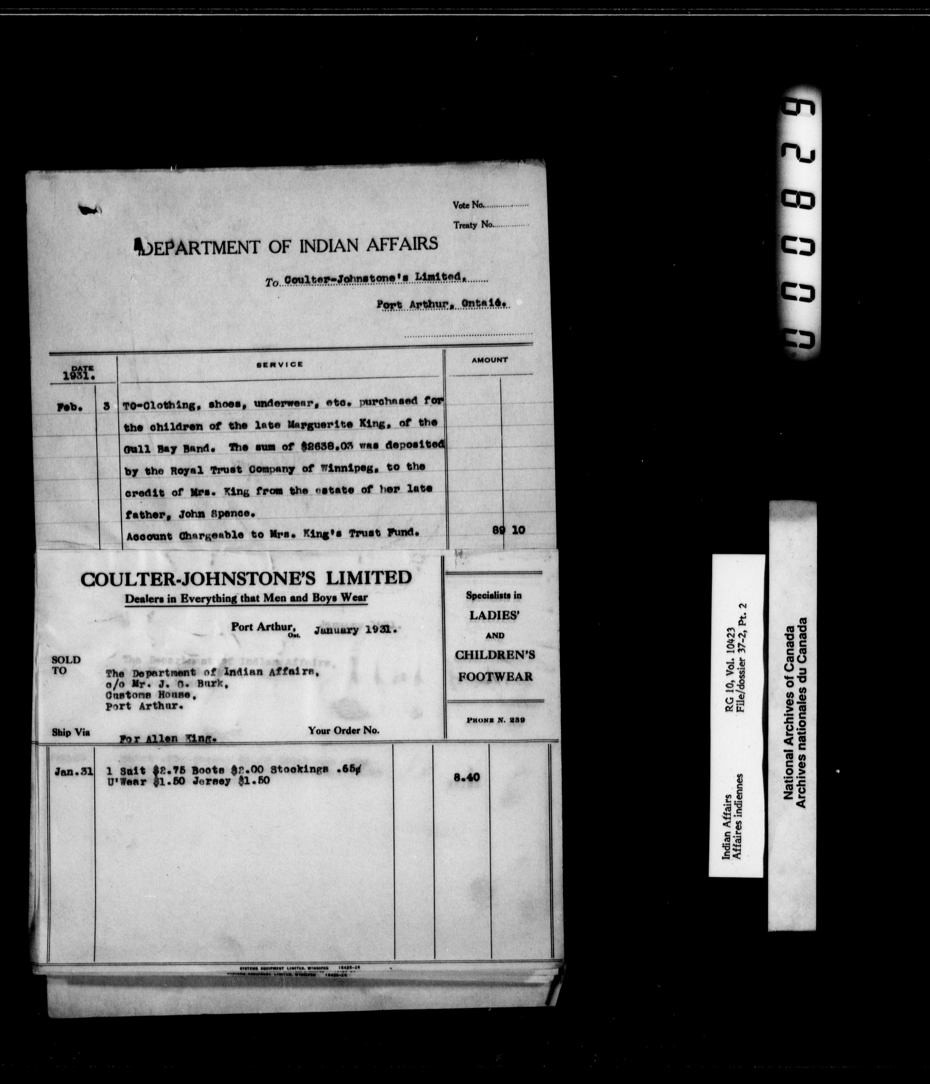 Department of Indian Affairs : Port Arthur Agency : T-10076