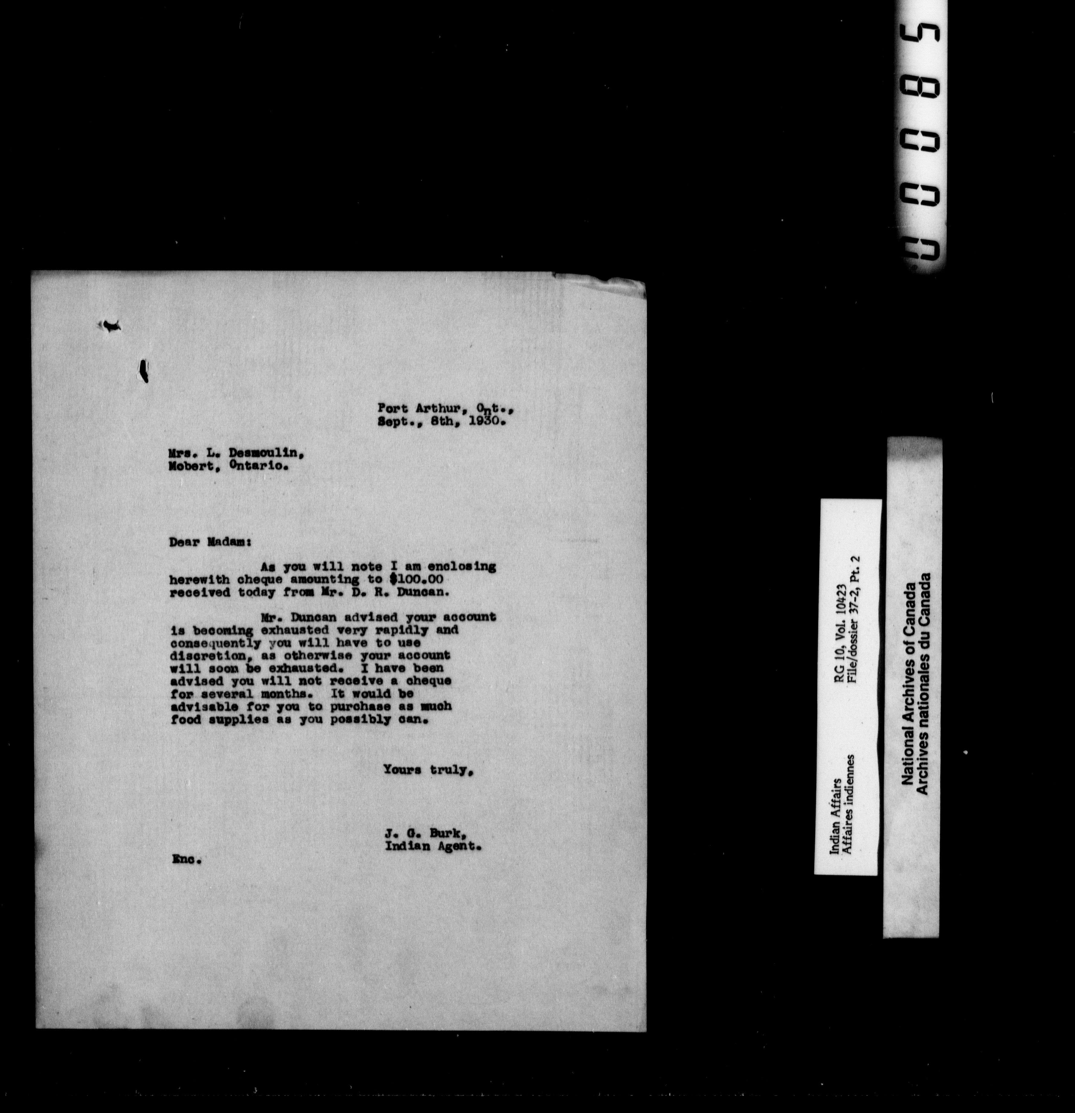 Department of Indian Affairs : Port Arthur Agency - 10076